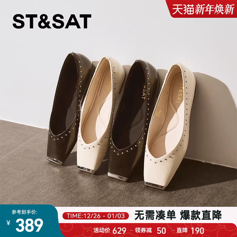 星期六简约浅口单鞋2025春季新款方头亮面韩版低跟女鞋SSD1111095