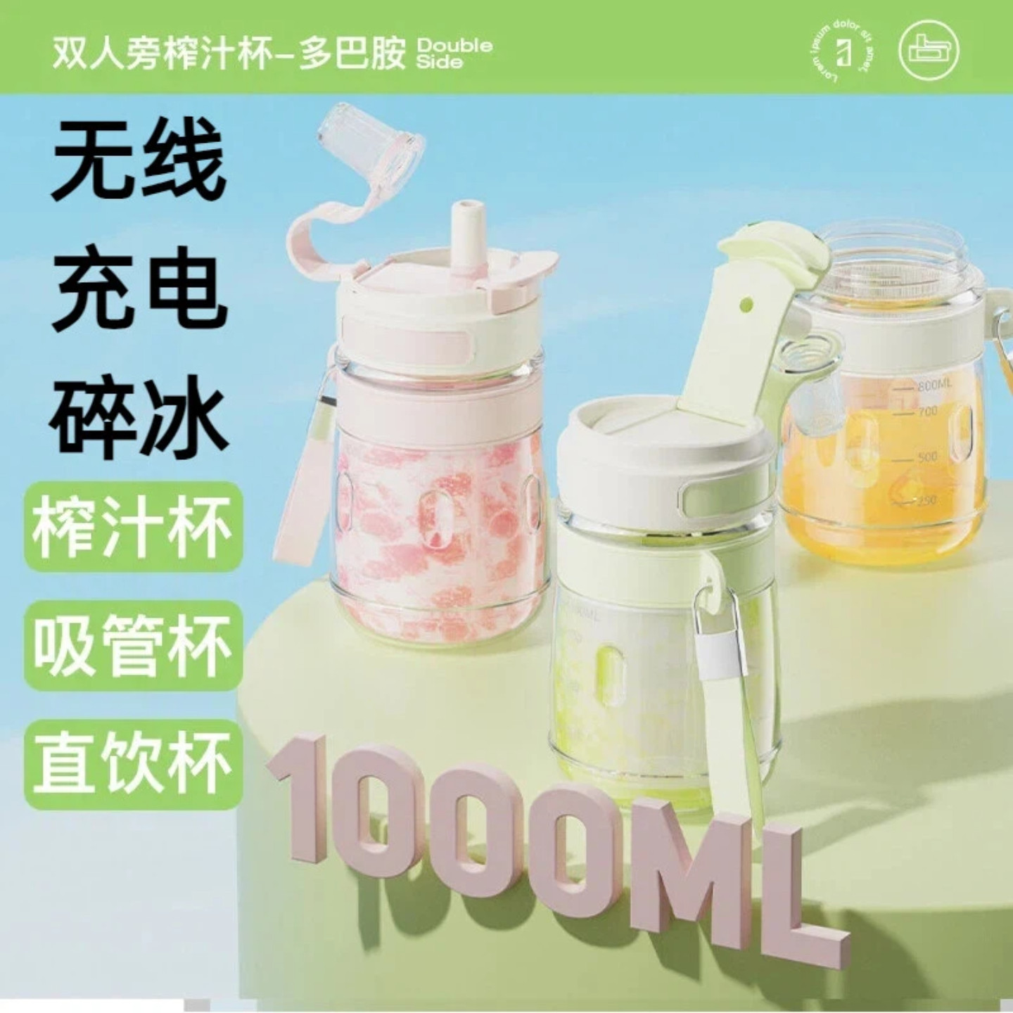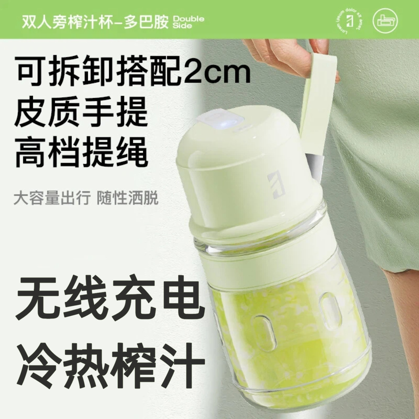 双人旁玻璃榨汁机充电榨汁杯充电榨汁桶无线充电果汁机水果榨汁机