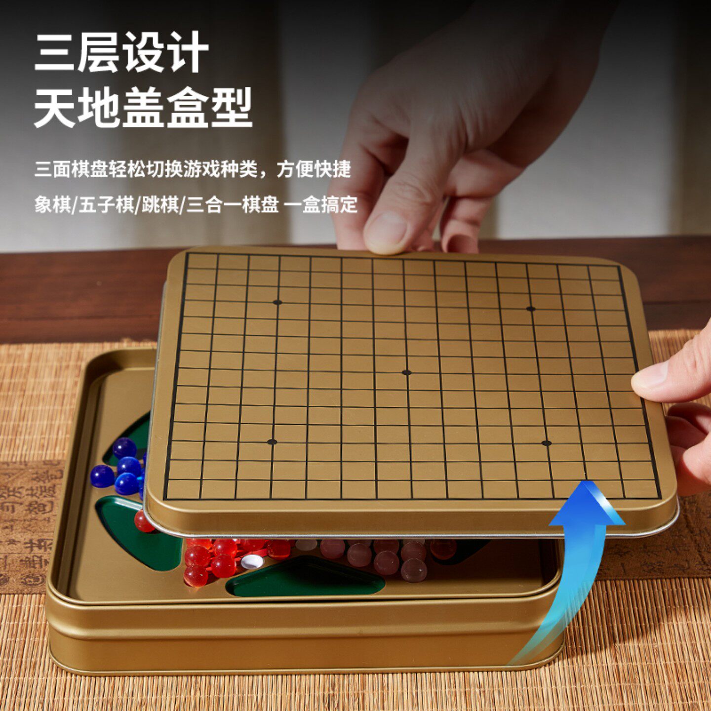 高端三合一中国象棋磁吸五指棋跳棋折叠便携棋盘儿童成人桌游礼物
