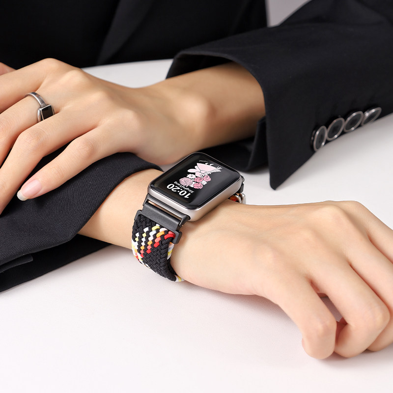 适用华为手环8/9/10表带新款荣耀9尼龙编织磁吸透气智能运动腕带创意升级磁吸扣替换带配件X高级彩虹金属黑色