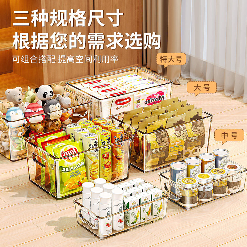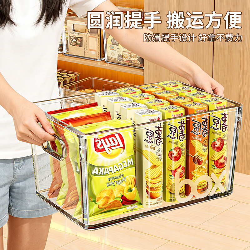 橱柜收纳盒桌面整理杂物零食透明置物筐厨房亚克力长方形储物盒子