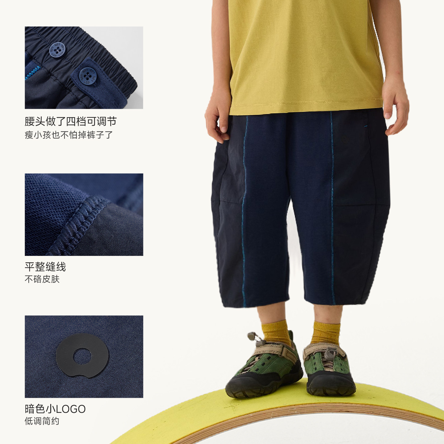Q21纯棉府绸儿童七分裤拼接款运动休闲裤男女童耐磨可调节裤子