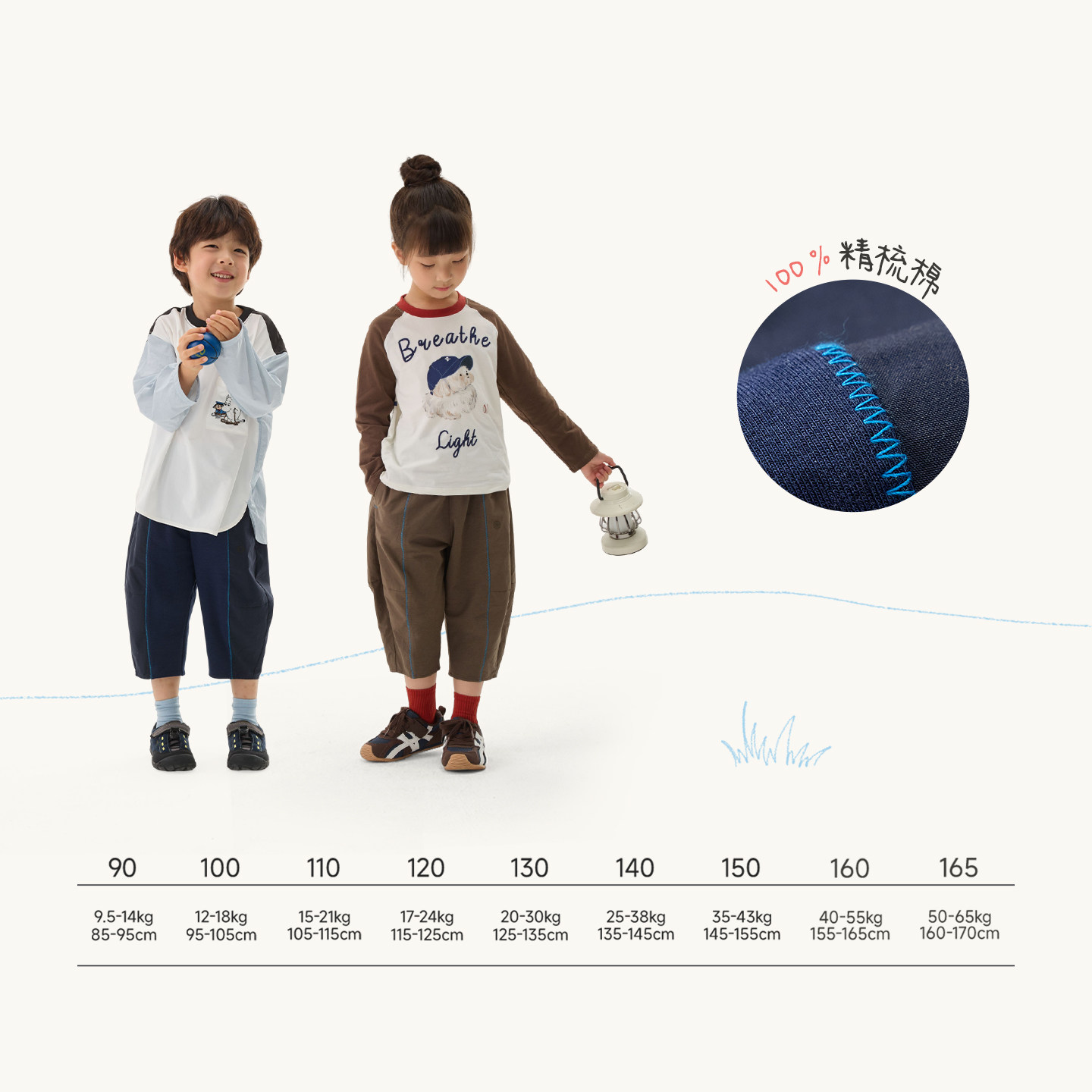 罗蒙儿童卡其色校园服裤子男童松紧西裤小学生加绒女童藏青运动裤
