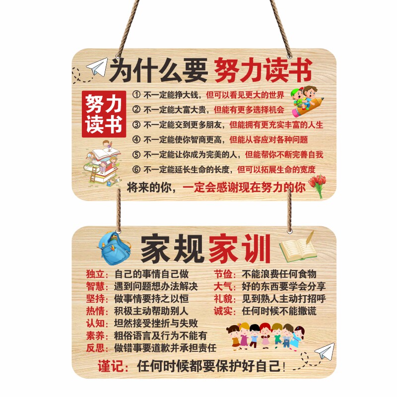 家规家训挂牌小孩子励志标语墙贴学生学习自律神器摆件警示牌挂图