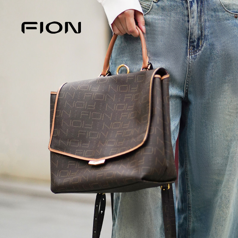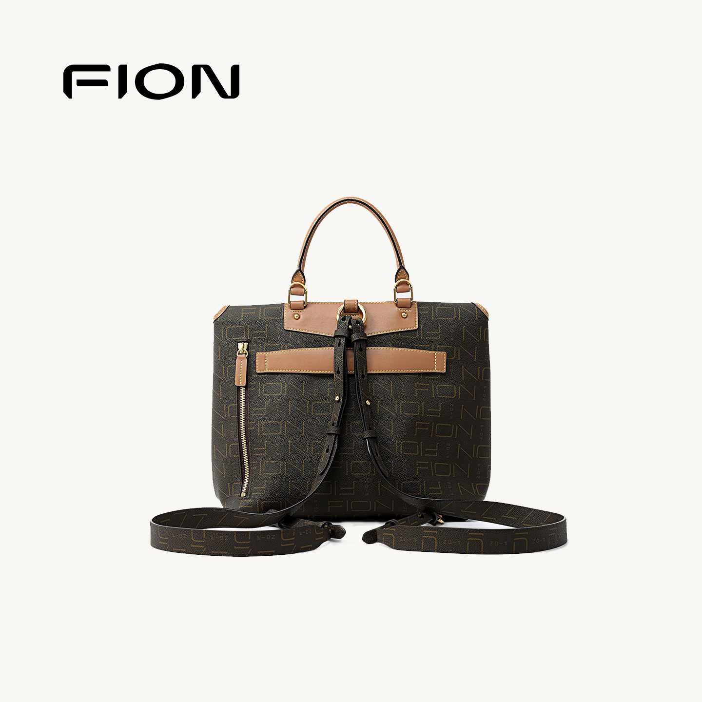 Fion/菲安妮老花双肩背包新款大容量女通勤复古小众高级斜挎包包