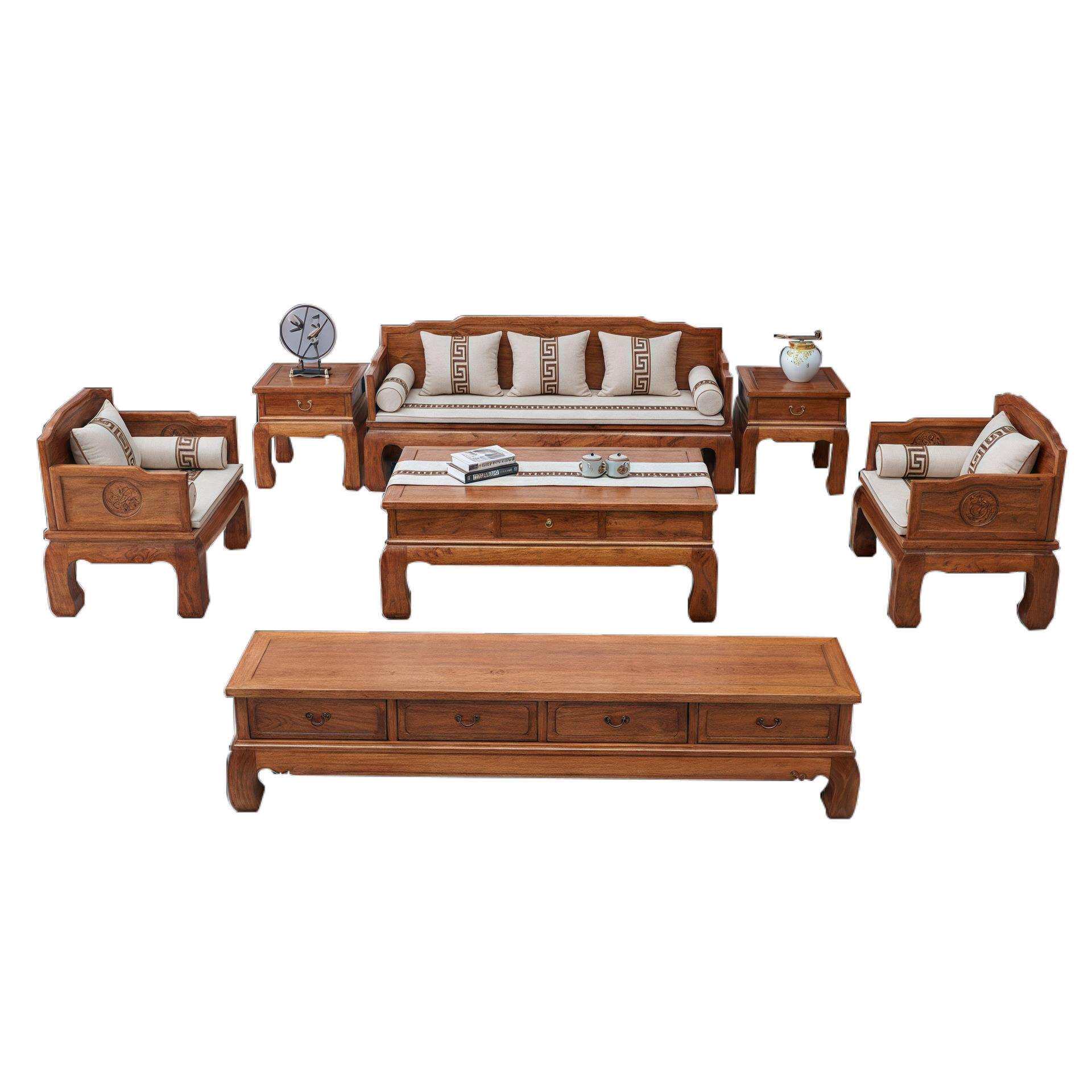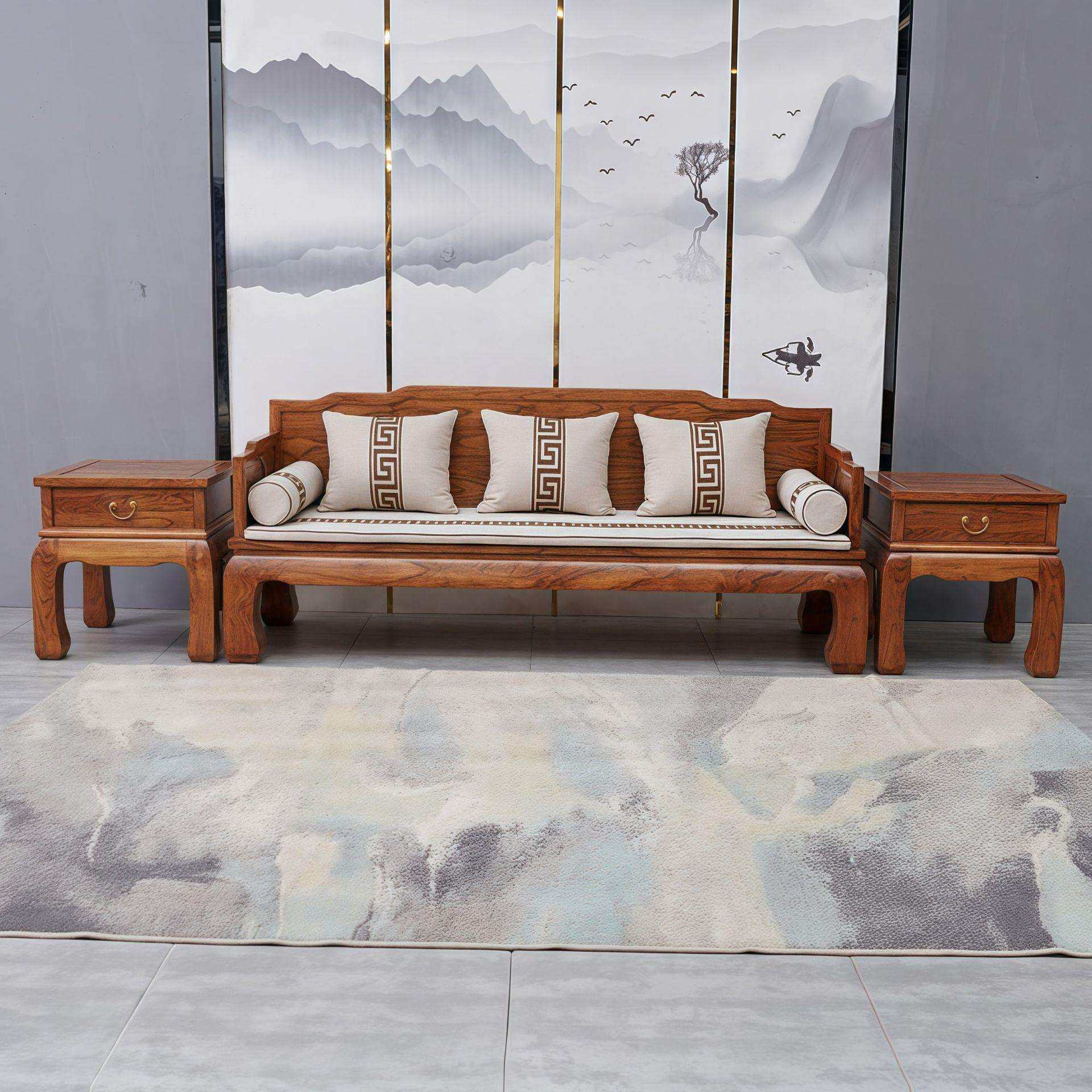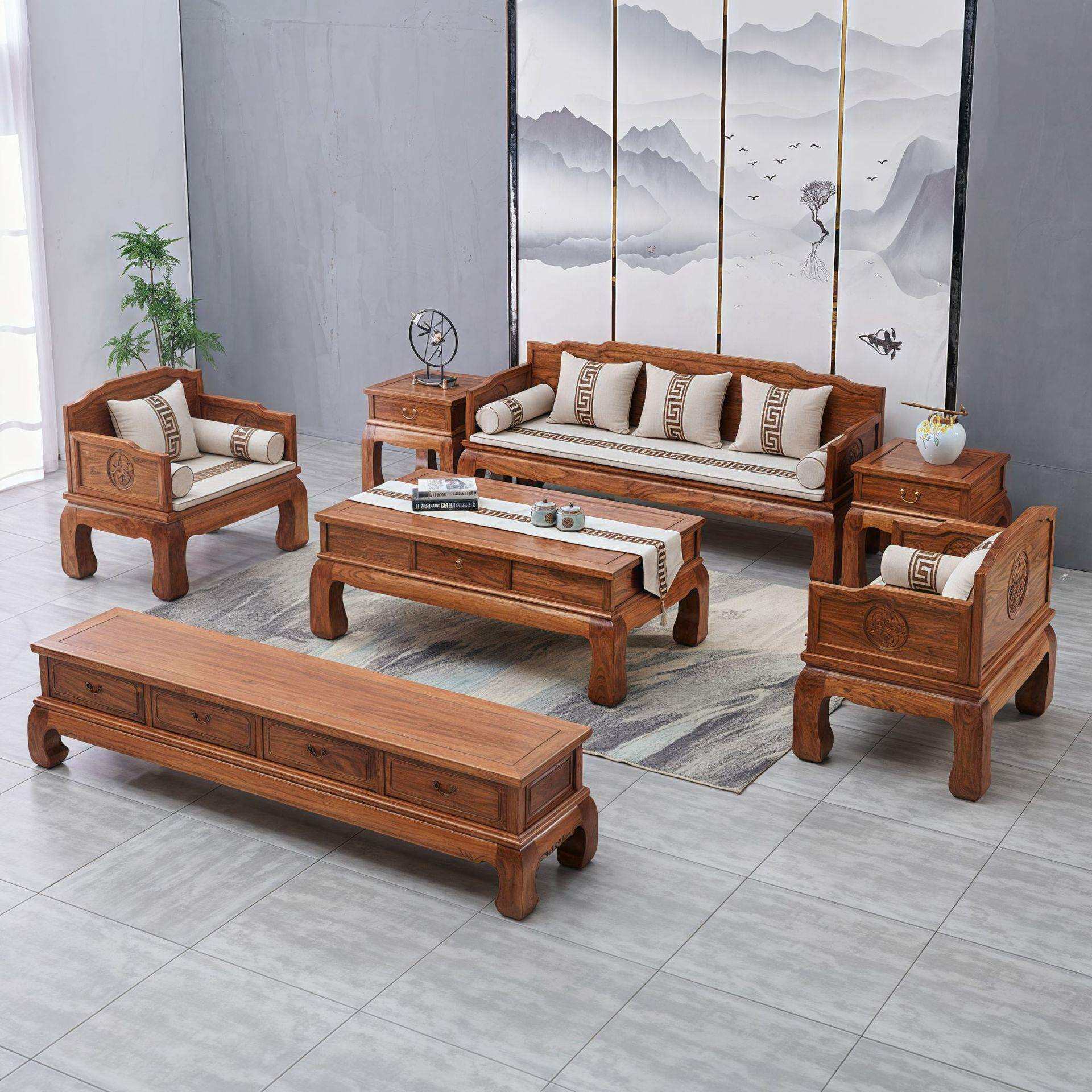 实木榆木沙发全实木单人罗汉床小沙发客厅组合家具