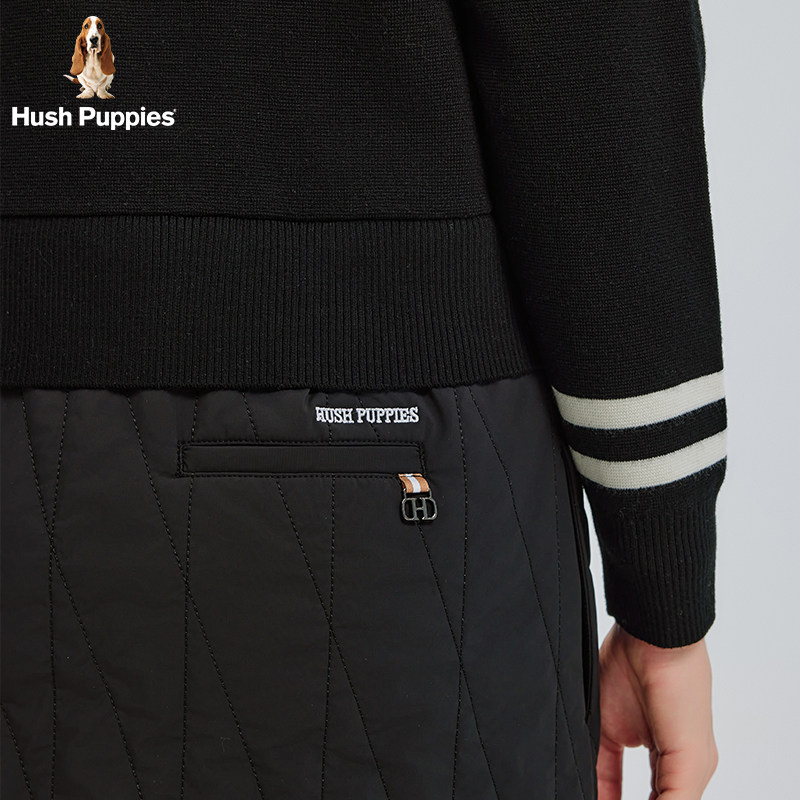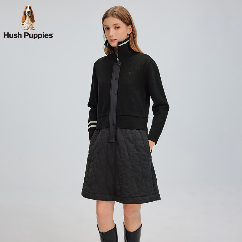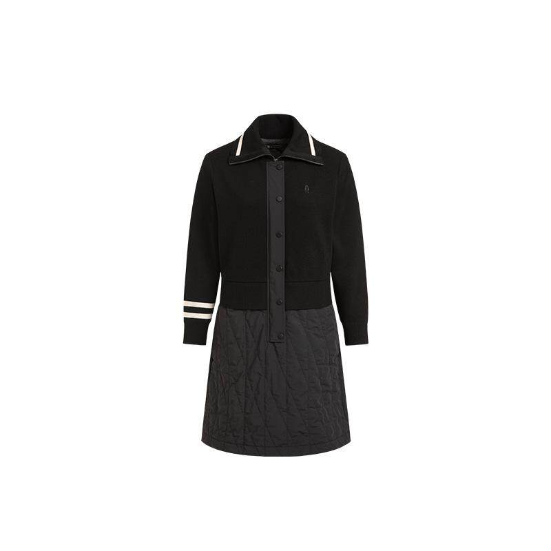 【弹力保暖】暇步士春季休闲针织长袖连衣裙合体大翻领拼接裙子女