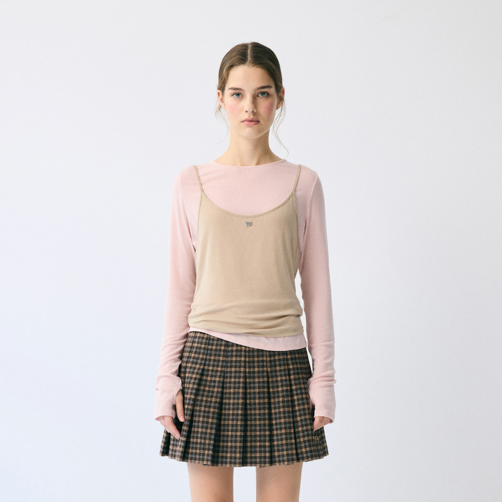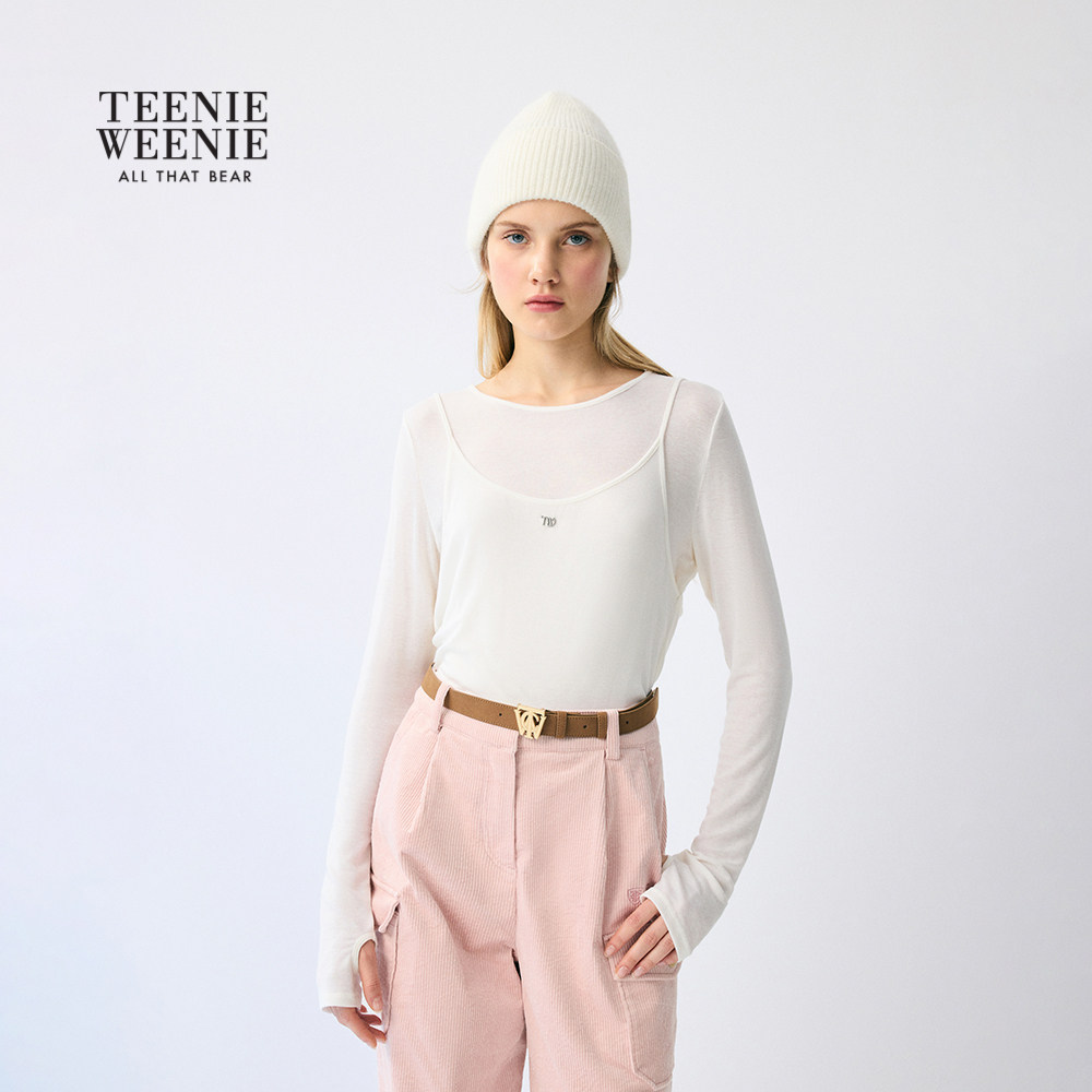TeenieWeenie小熊女装假两件长袖T恤2025冬季新款时髦吊带打底衫