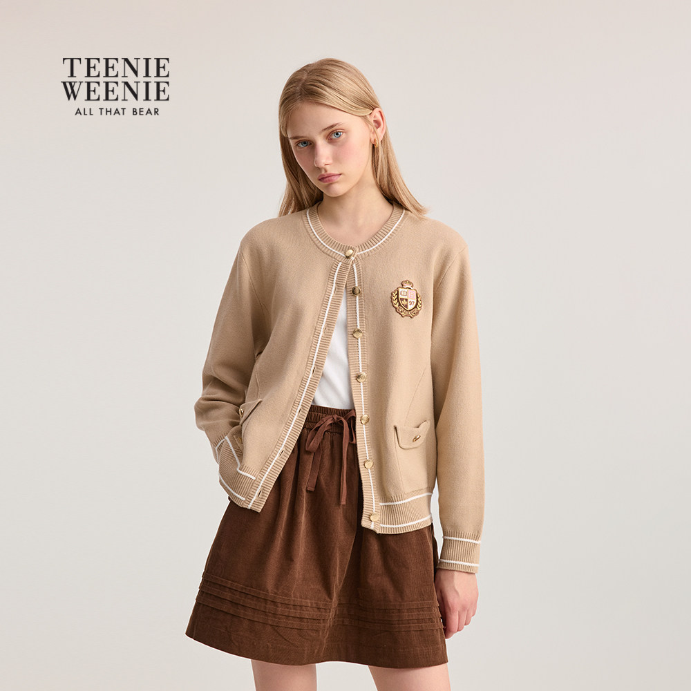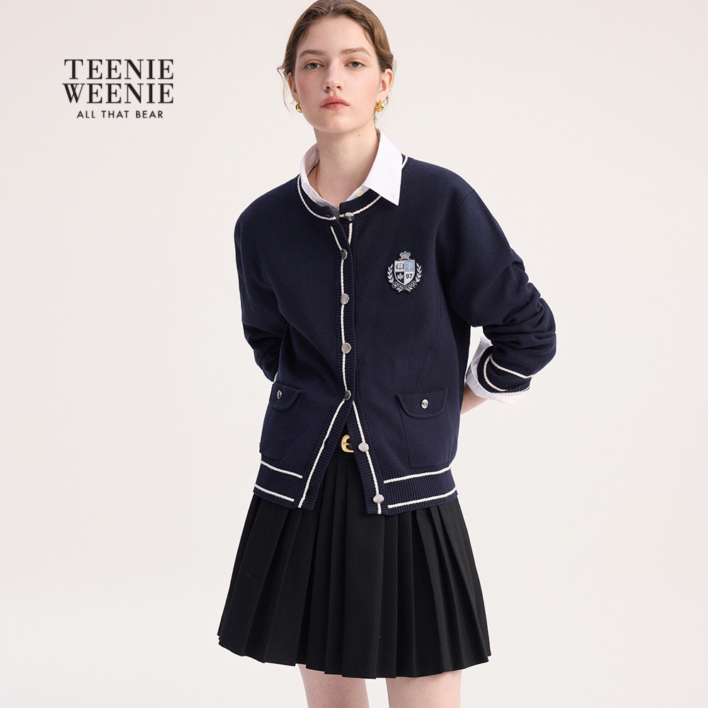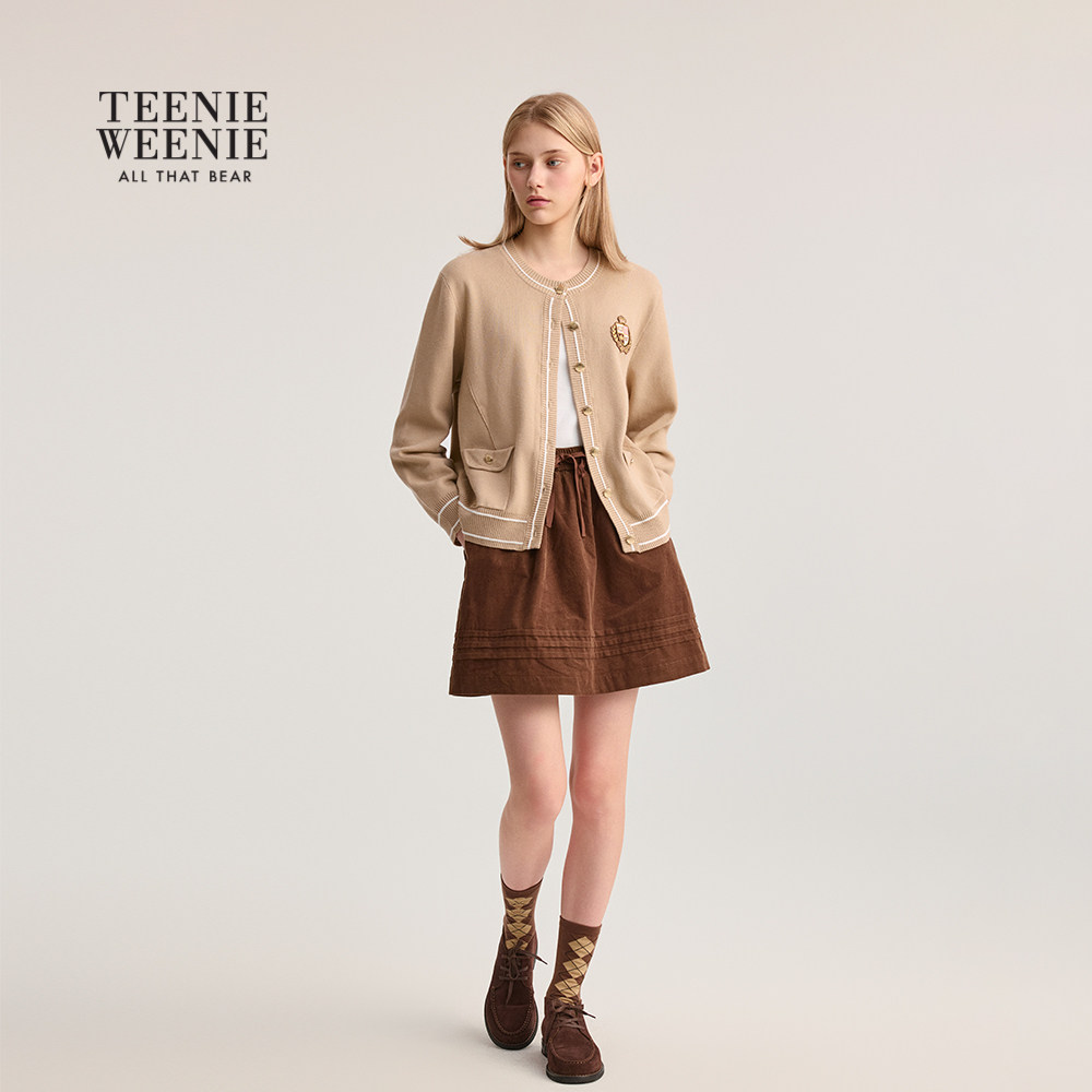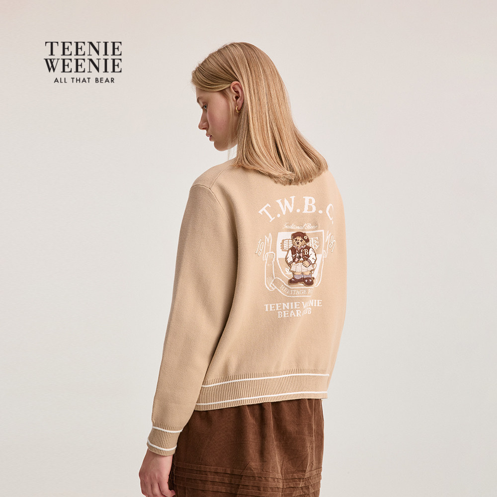 TeenieWeenie小熊女装毛针织衫2025冬季新款简约休闲撞色圆领毛衣