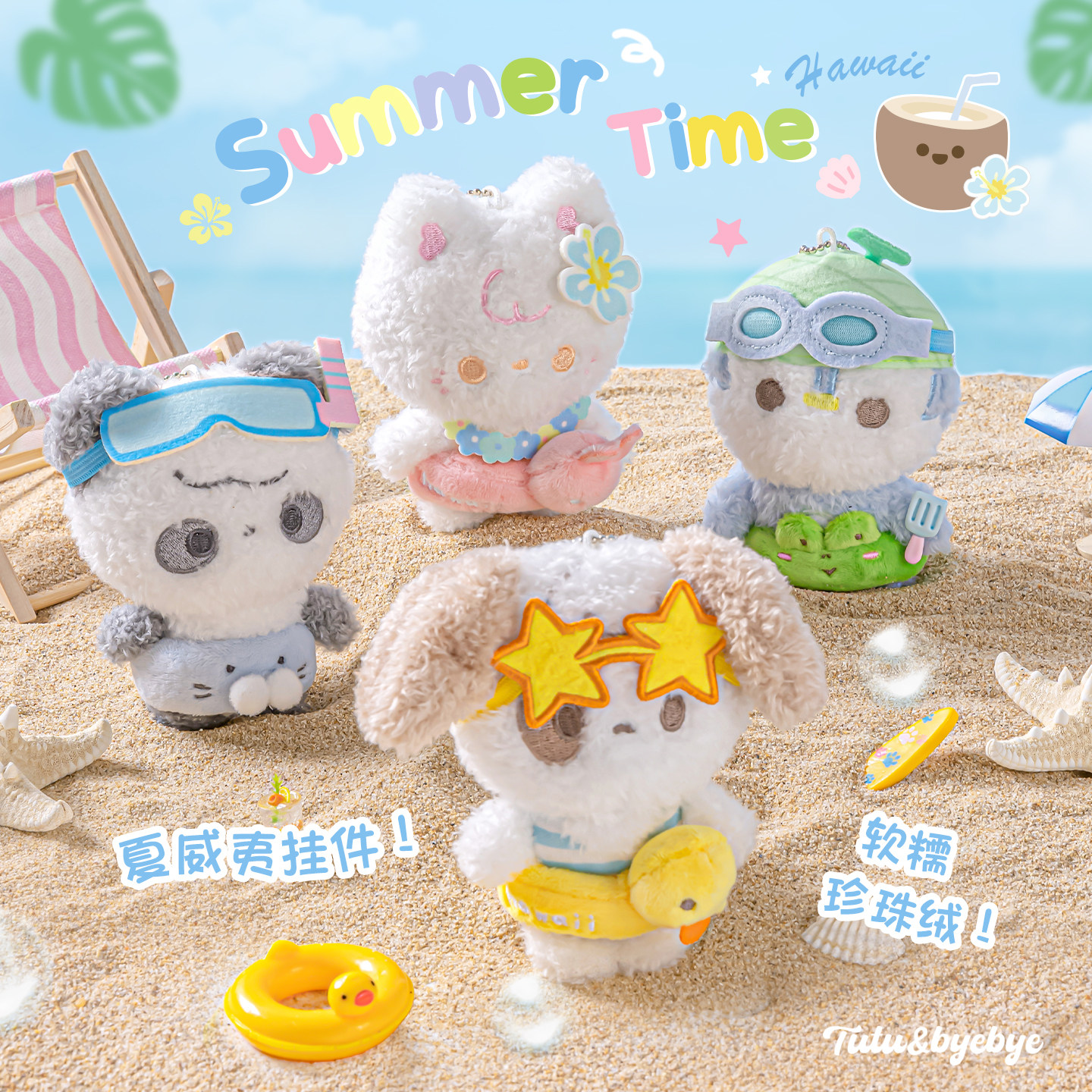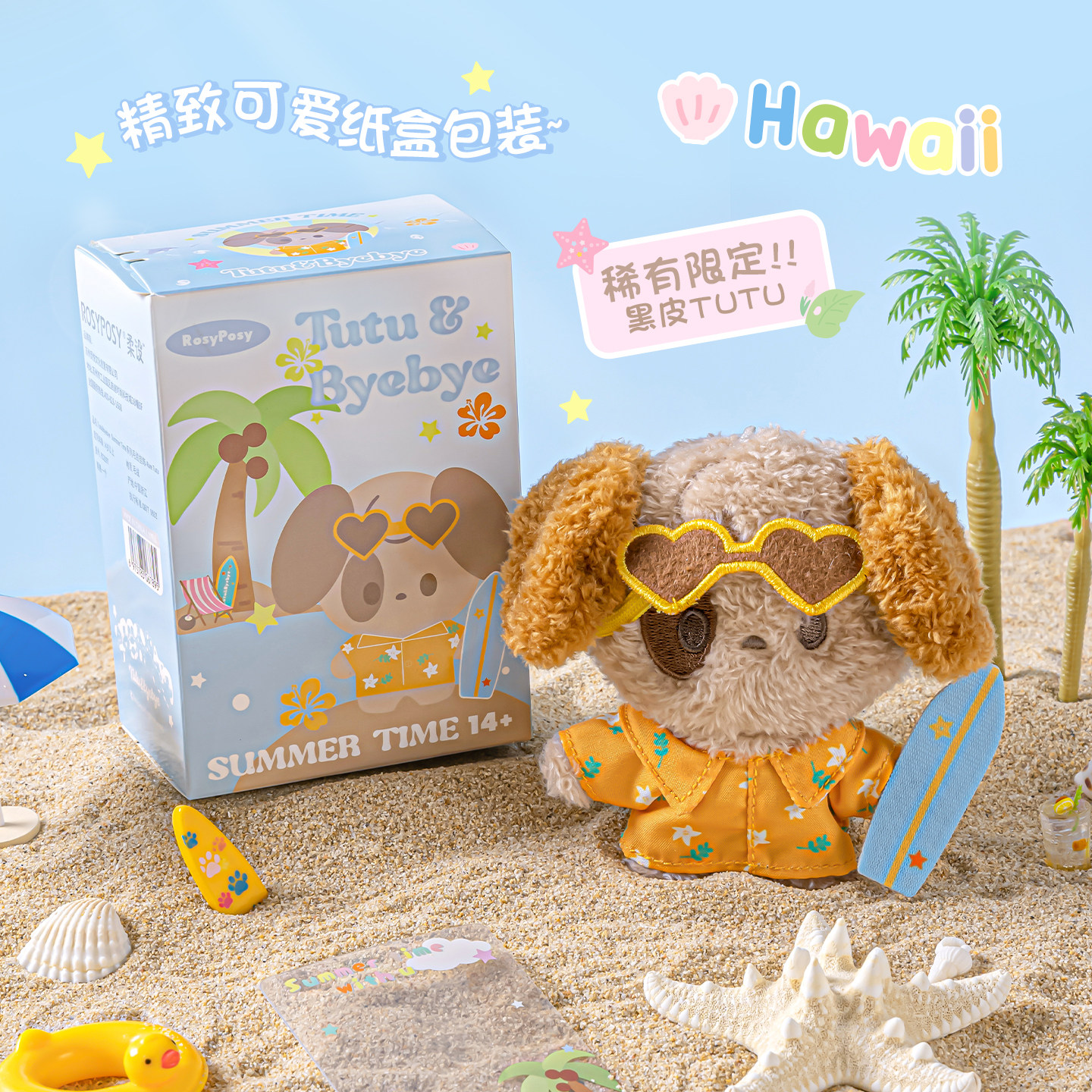 「Aloha!一起过夏天」Rosyposy柔设毛绒挂件夏威夷冲浪毛绒挂件玩偶娃娃公仔熊猫书包生日礼物毛绒娃娃玩具