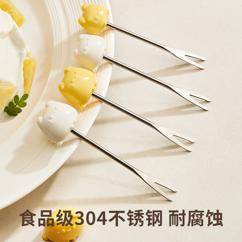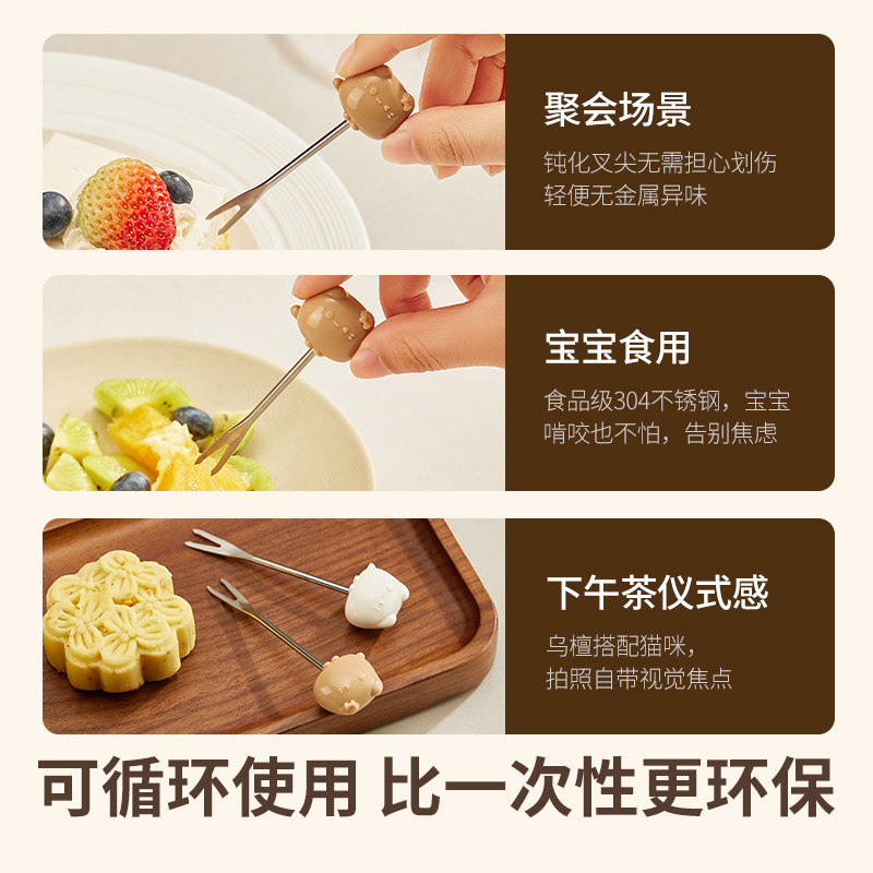 amercook乌檀木水果叉套装中古风304不锈钢轻奢甜品西瓜叉子收纳