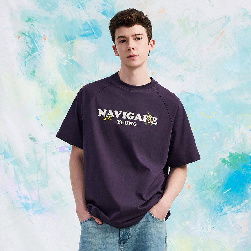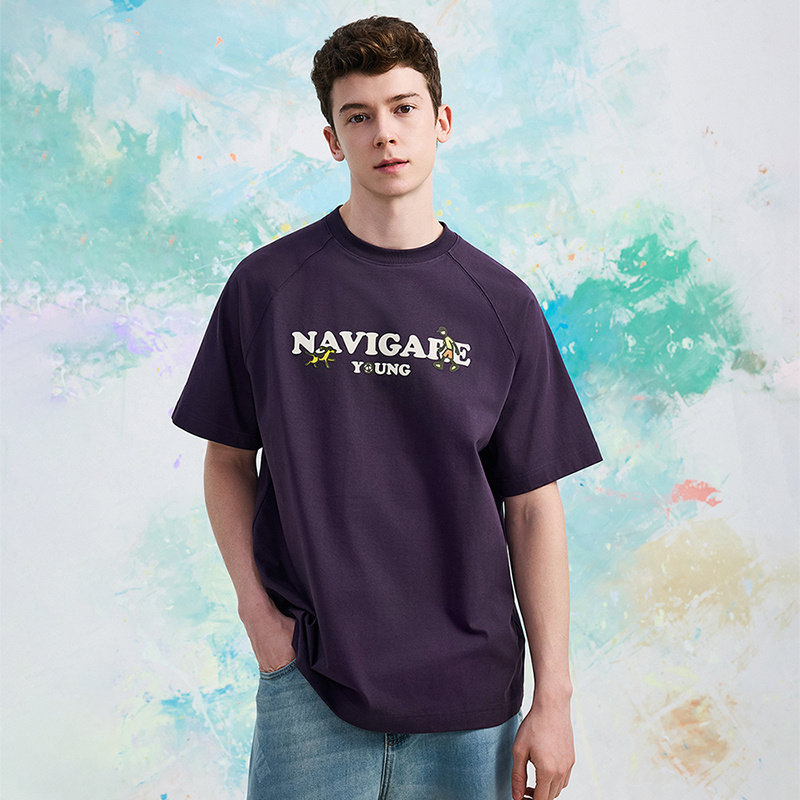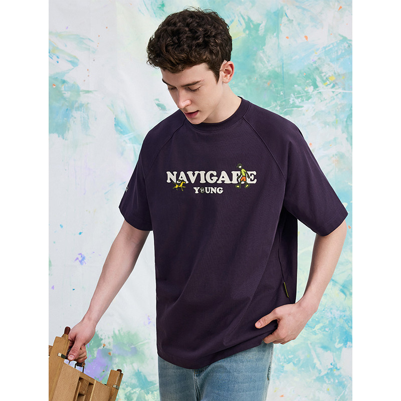 [冰丝]Navigare意大利小帆船夏季紫色速干T恤男短袖圆领体恤