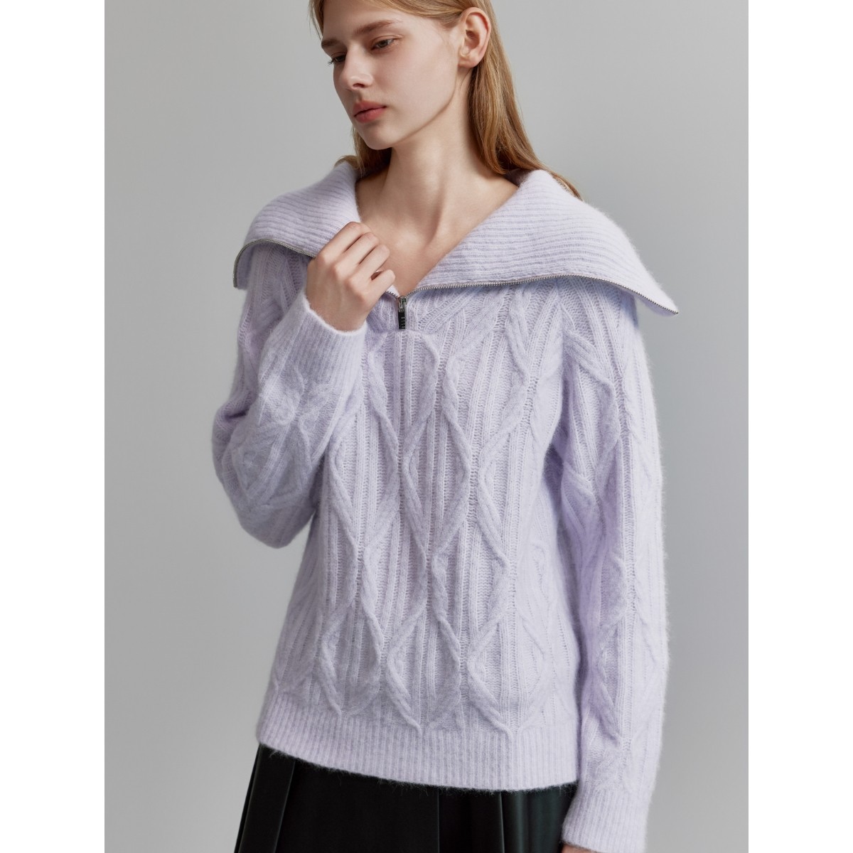 ELLE紫色法式慵懒风软糯毛衣女2025冬装新款小众套头高领毛针织衫