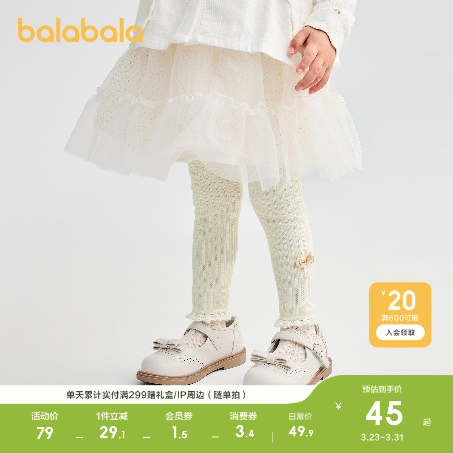 巴拉巴拉宝宝打底裤蕾丝花边长裤女童2026秋休闲长裤童装儿童裤子