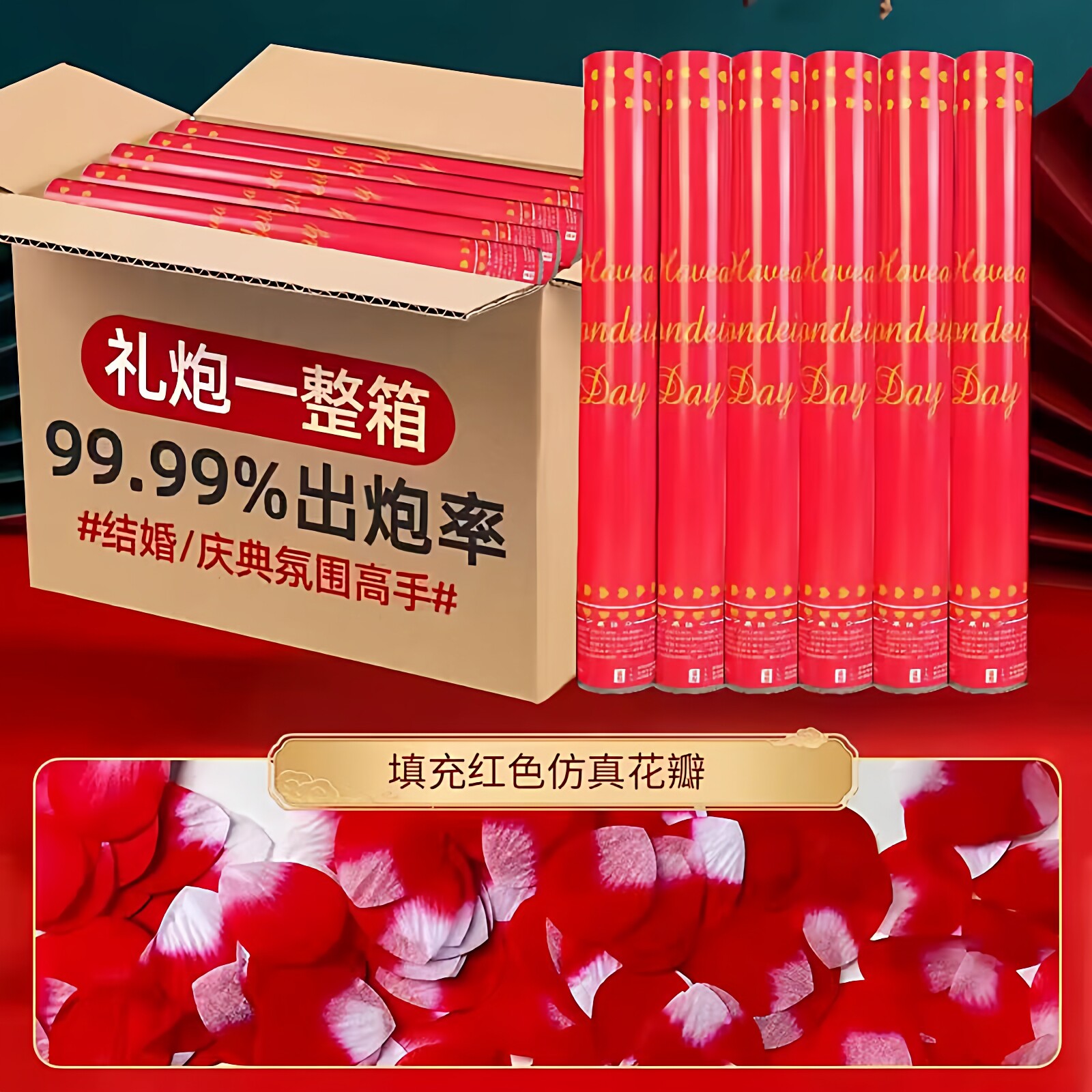 结婚花瓣礼炮礼花筒彩带手拧婚礼喷花筒炮整箱礼宾花婚庆用品大全