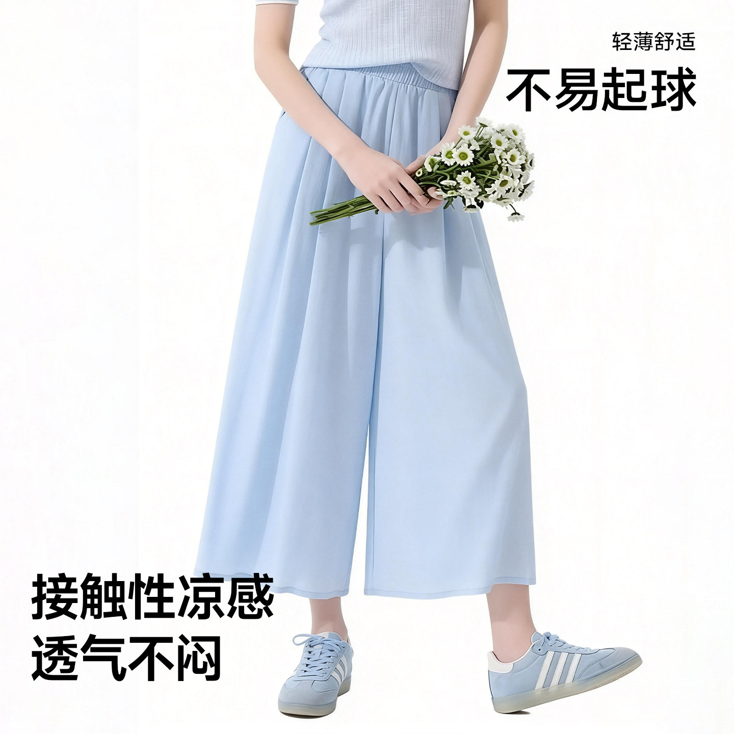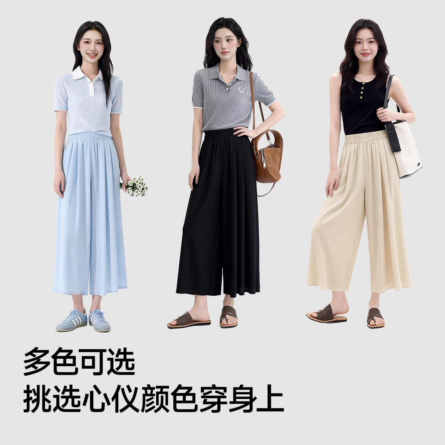 猫人山本阔腿裙裤女2025夏季新款高腰直筒垂顺遮肉舒适休闲长裤Z