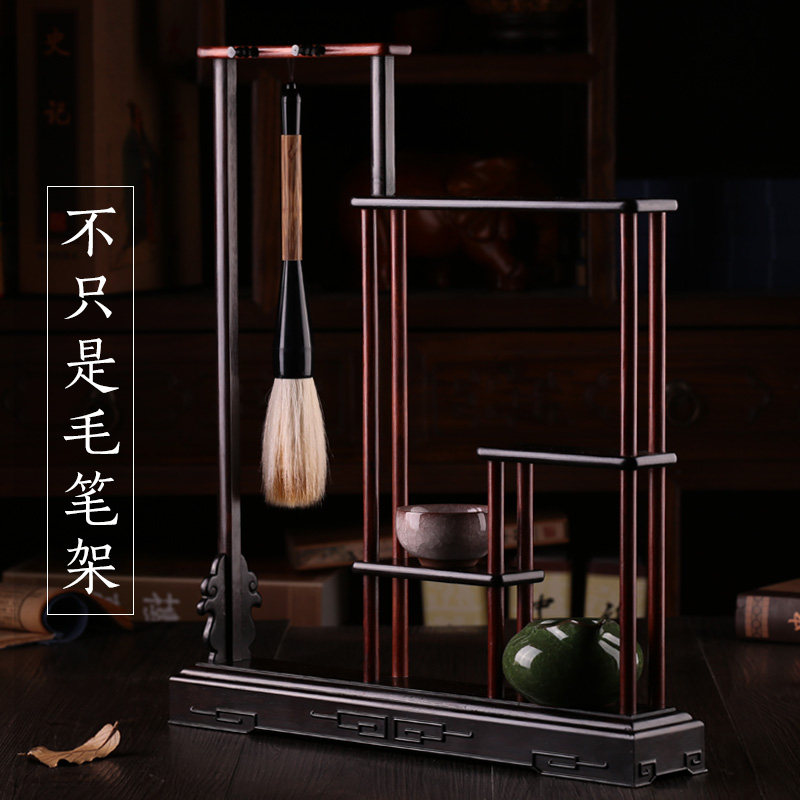 红木笔架b毛笔挂摆件 黑檀木雕刻明式毛笔架笔挂文房书法用品大号