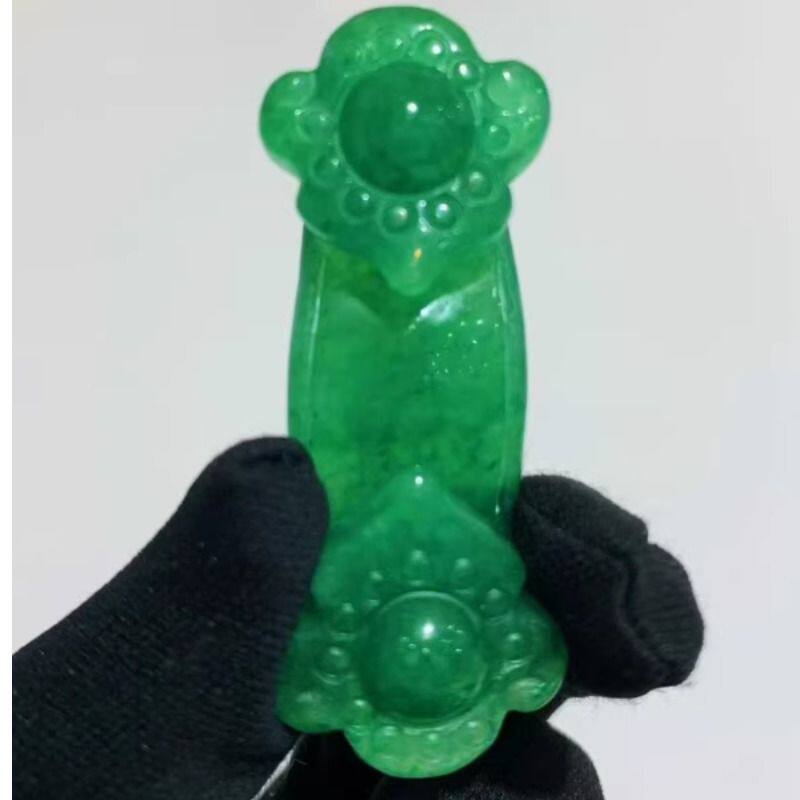 东陵玉如意摆件绿色玉石手持家居装饰开业礼品办公室客厅送礼
