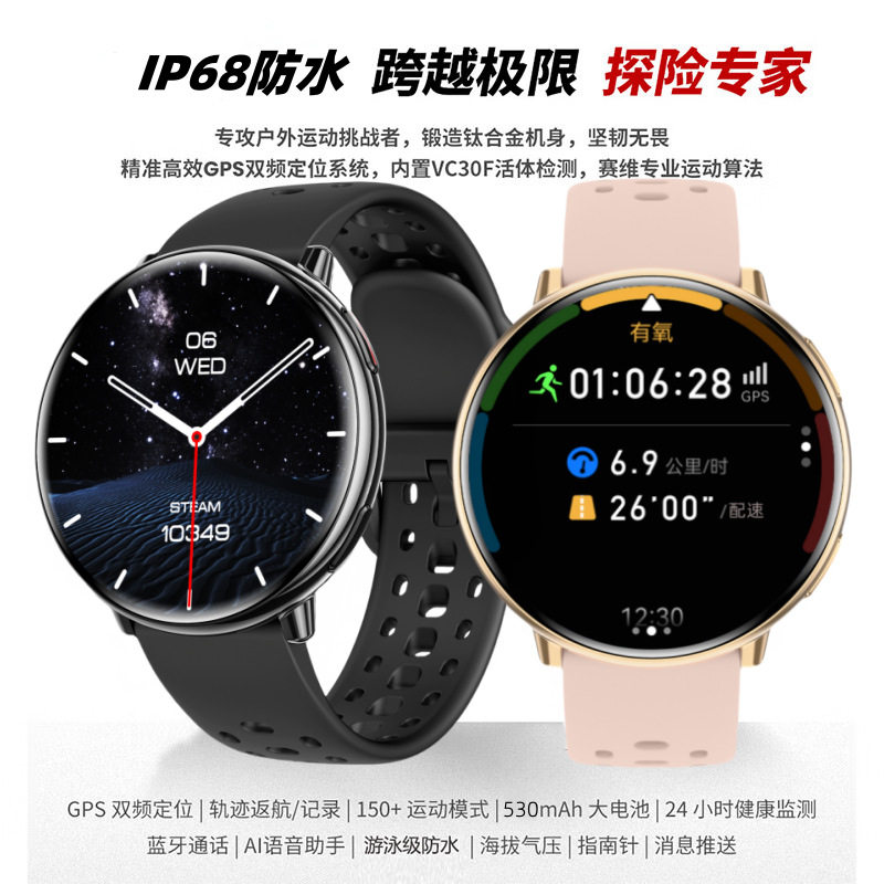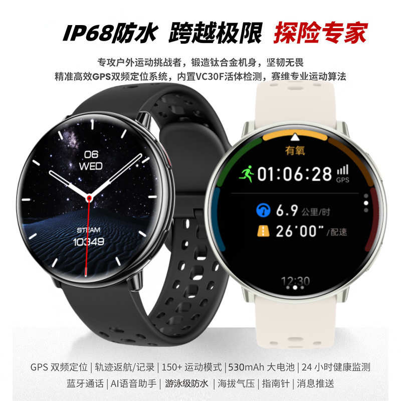 汇茗品六星定位GPS配速专业运动手表跑步防水专业游泳测距记圈计时男女