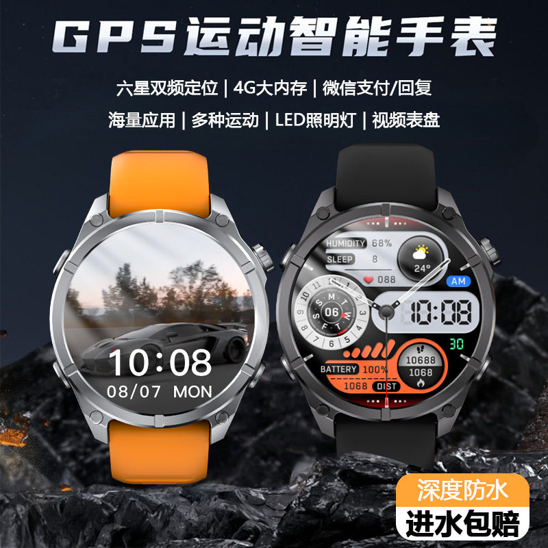 旭利盛户外运动智能手表多功能GPS定位微信回复支付手电筒4G内存HD400