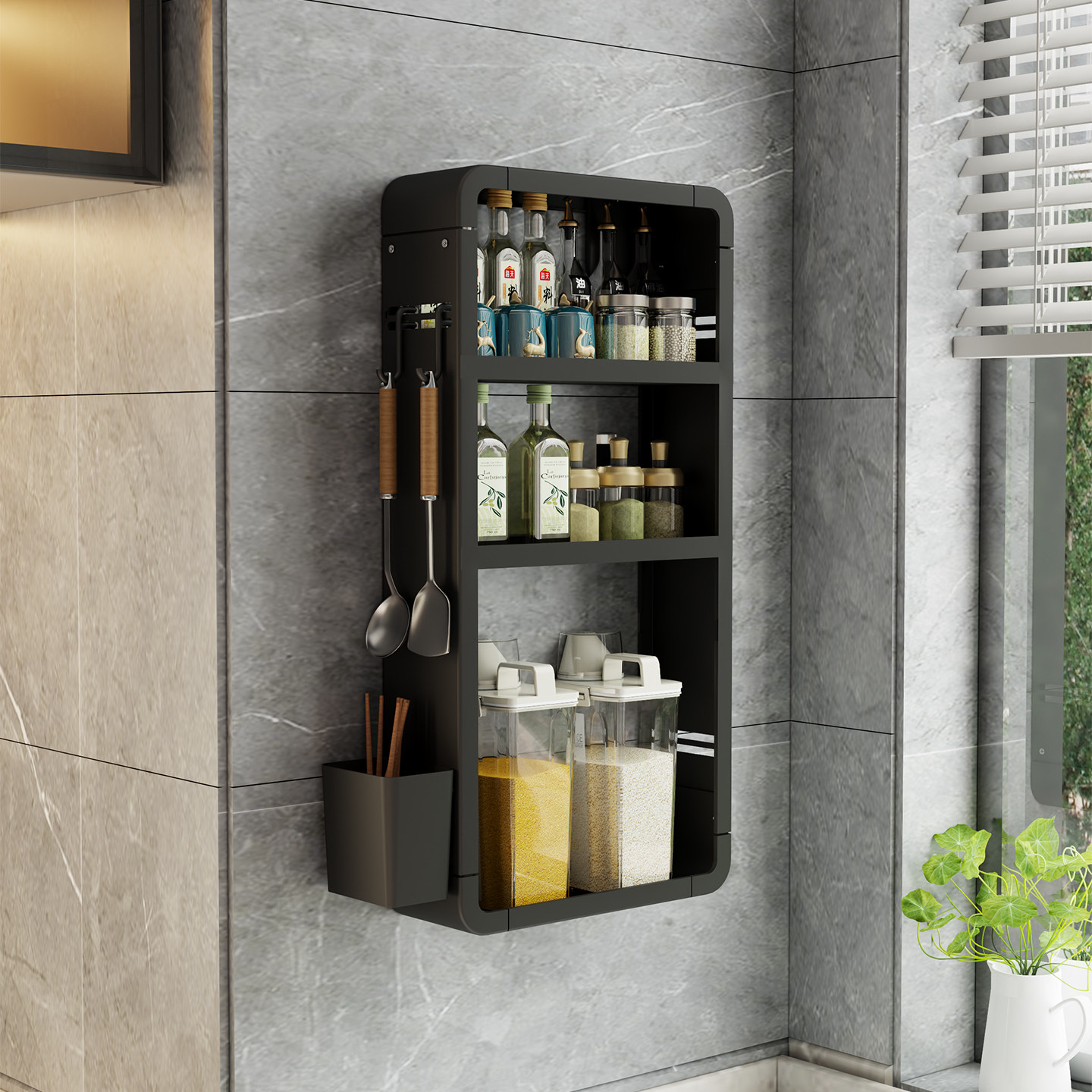 厨房置物架调味料架多功能壁挂式免打孔墙上多层收纳架家用储物架