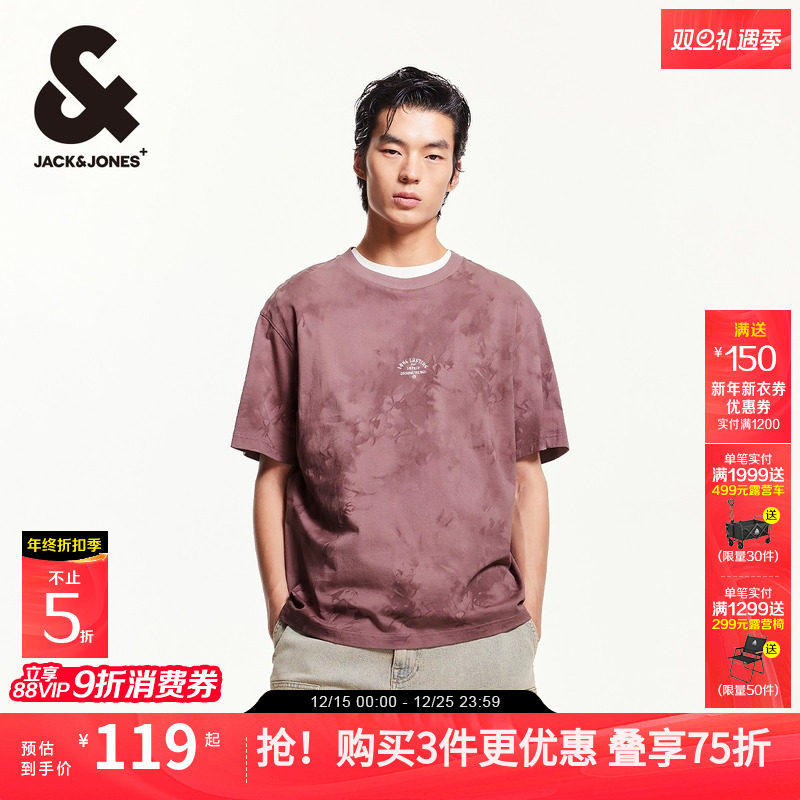 【扎染】杰克琼斯男装2025年秋季新款纯棉男士短袖T恤印花打底衫