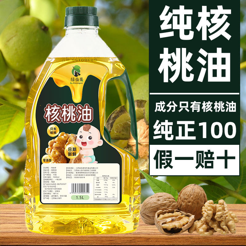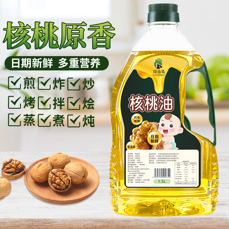 纯核桃油官方旗舰店食用油一级压榨山核桃油儿童辅食学生家用