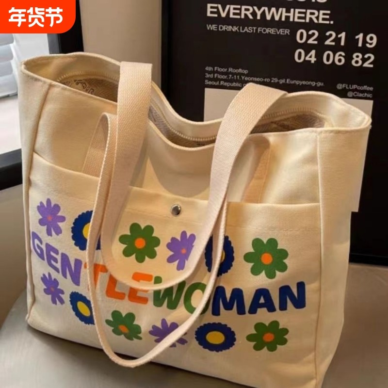 帆布包包女2024新款大容量通勤百搭手提袋大学生单肩包托特包小包