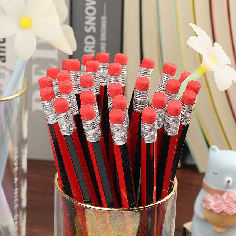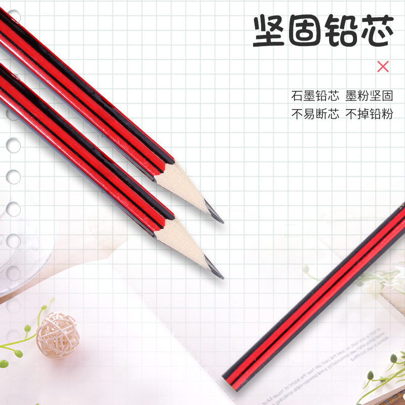 铅笔带橡皮红黑抽条铅笔小学生专用六角练字学习一二年级HB素描款