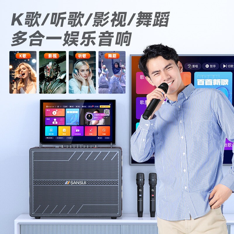 山水E97广场舞音响户外k歌音箱家家用点歌机庭ktv套装卡拉ok机