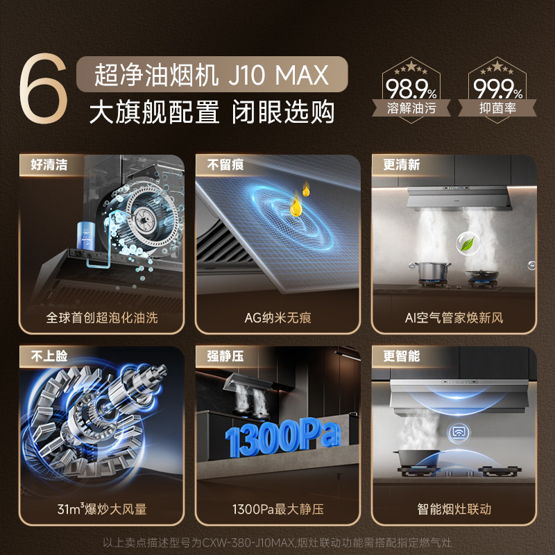 重磅新品万家乐超净抽油烟机J10系列厨房大吸力油烟机家用套装