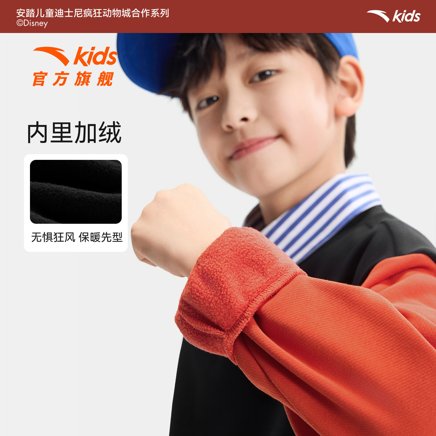 疯狂动物城IP联名安踏儿童卫衣男童2026年新款保暖加绒长袖卫衣