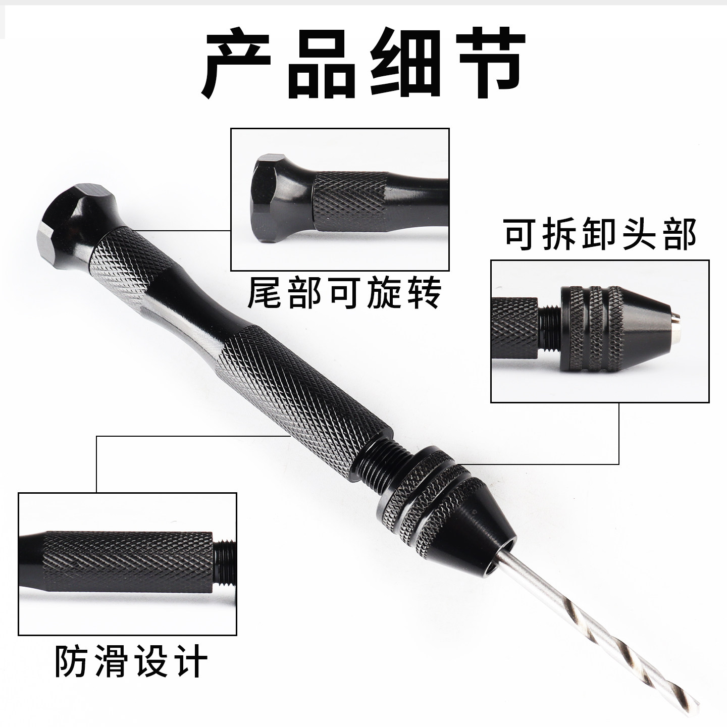 手捻钻手动打孔钻手工钻文玩手串木工模型DIY雕刻打孔器琥珀手钻