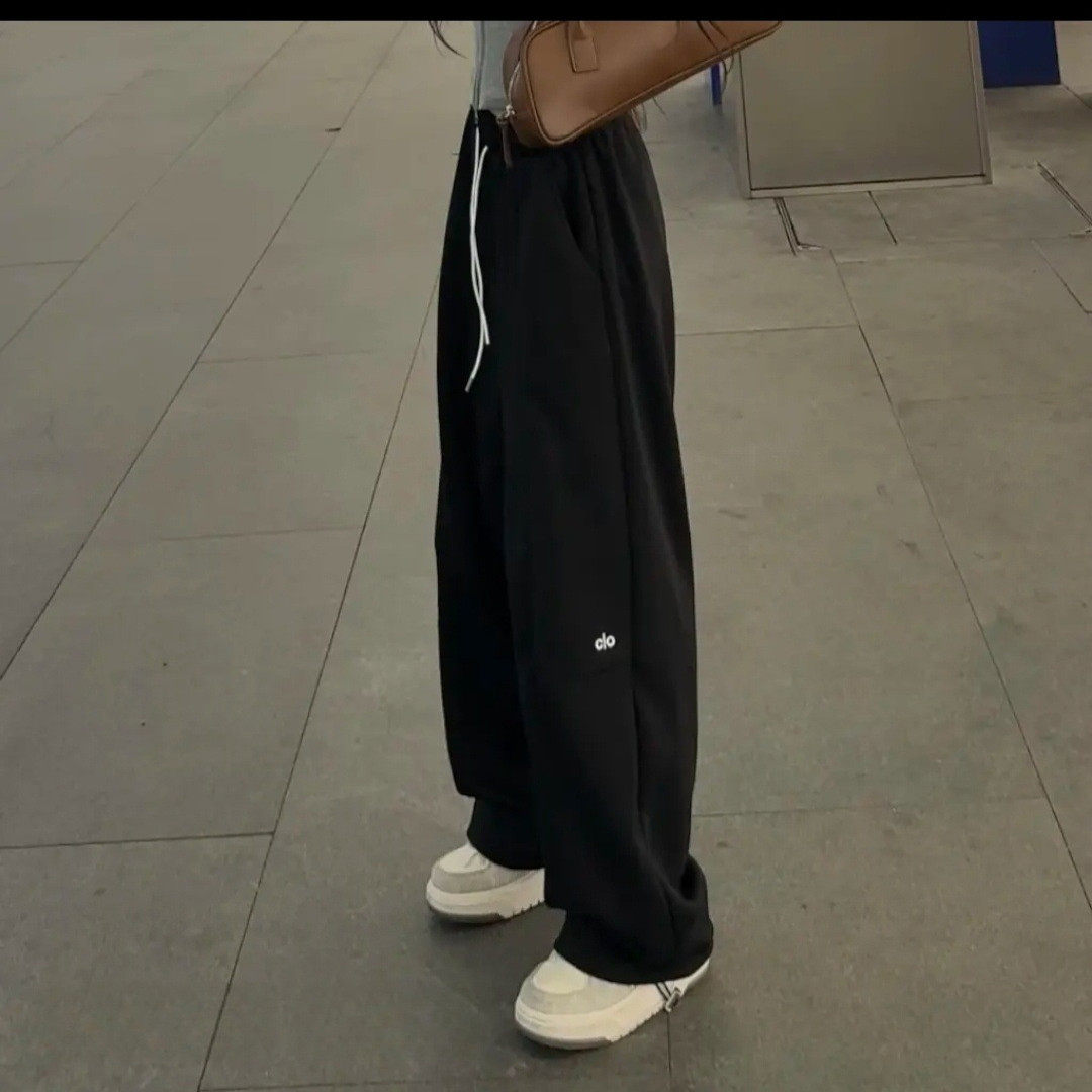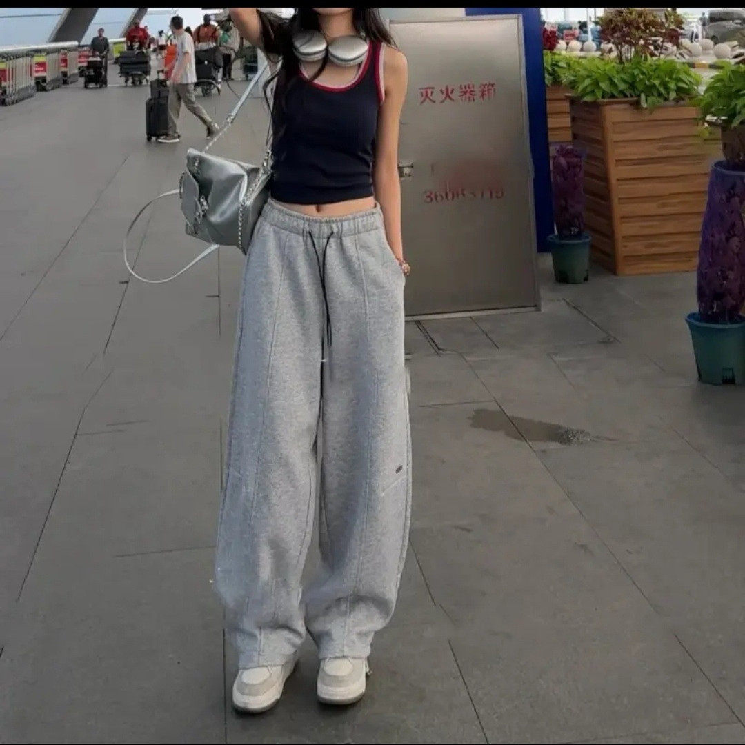 美式弯刀阔腿裤女2025秋冬新款高腰刺绣直筒显瘦运动休闲香蕉xt