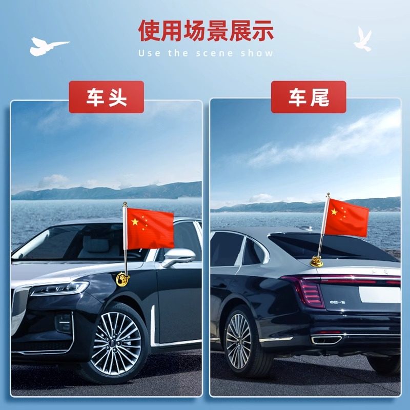 吸盘式车载国旗外置摆件小红旗旗杆五星红旗h7h5车外中国国旗h9汽车用婚车饰迎宾旗车头车顶车队装饰免打孔