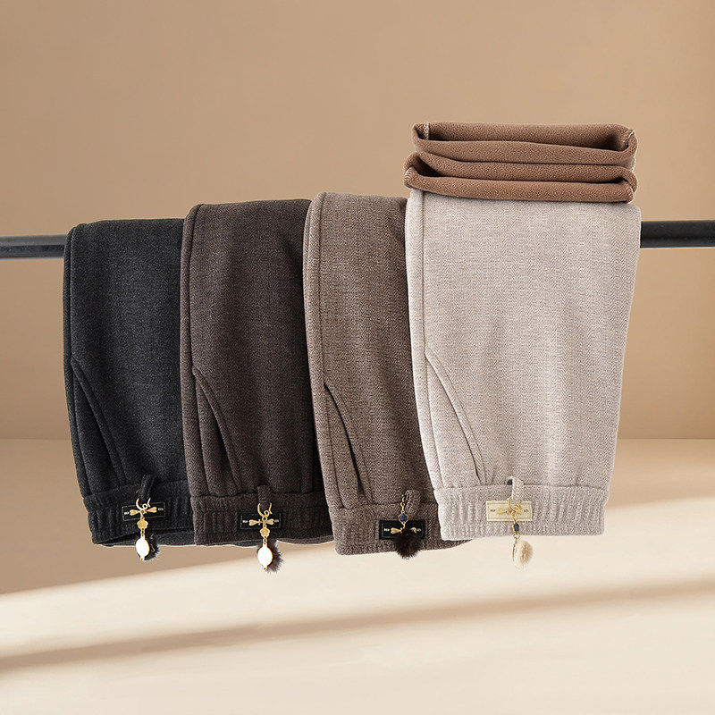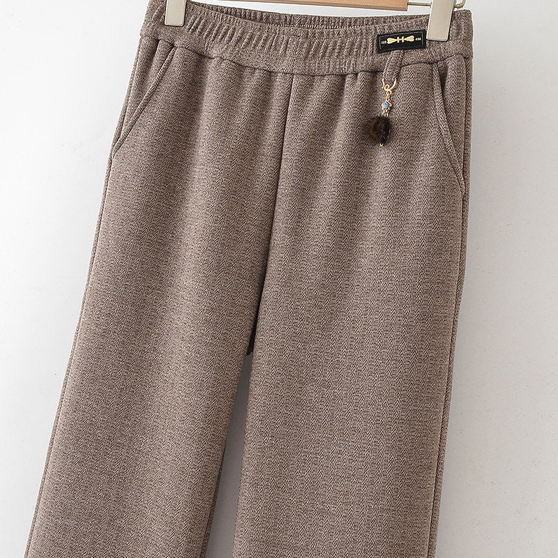 雅鹿妈妈冬装保暖阔腿裤秋冬裤子中老年女装加绒加厚休闲裤老年人