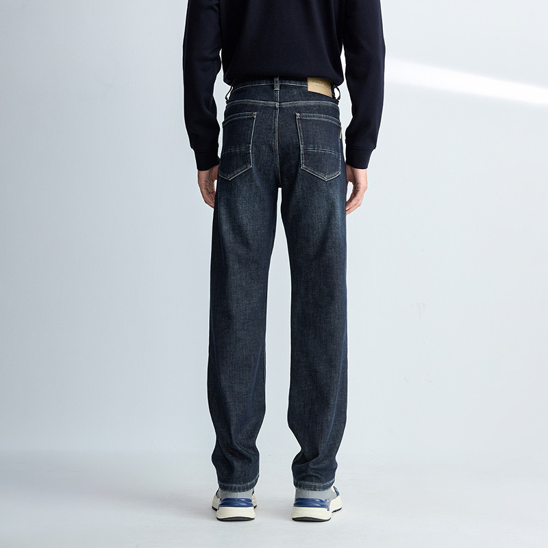 HLA/海澜之家轻商务经典系列牛仔裤25秋冬新加绒加厚保暖裤子男