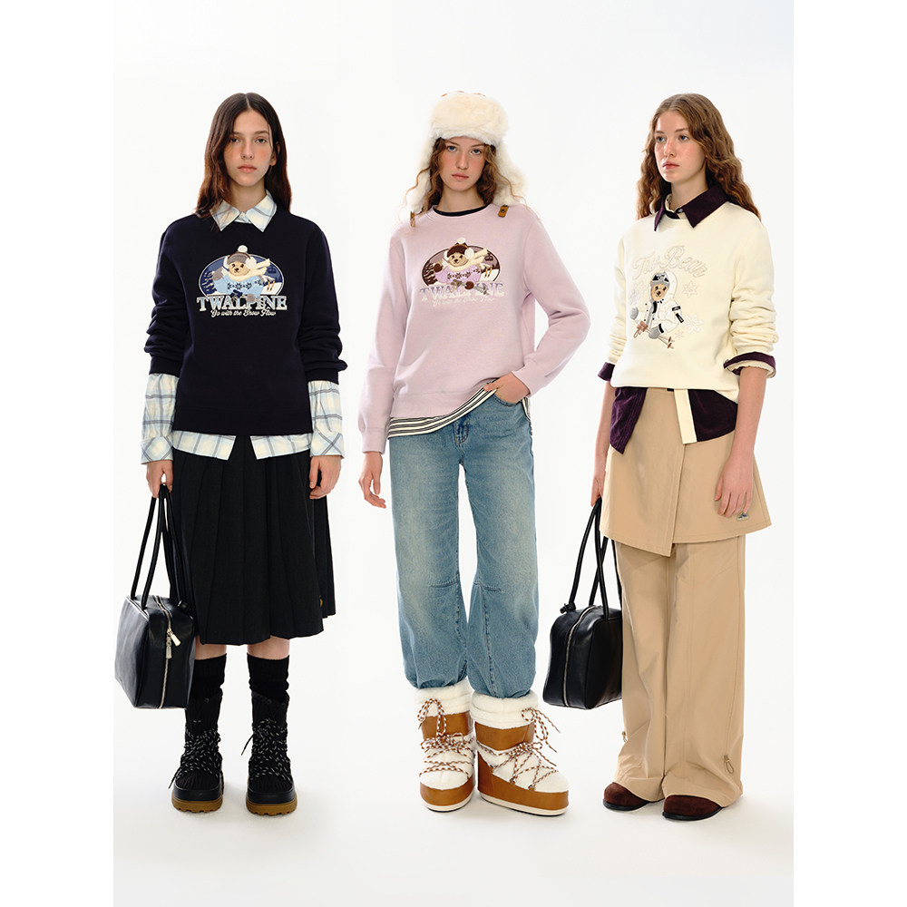 TeenieWeenie小熊女装卫衣冬季休闲舒适基础大熊刺绣圆领内搭上衣
