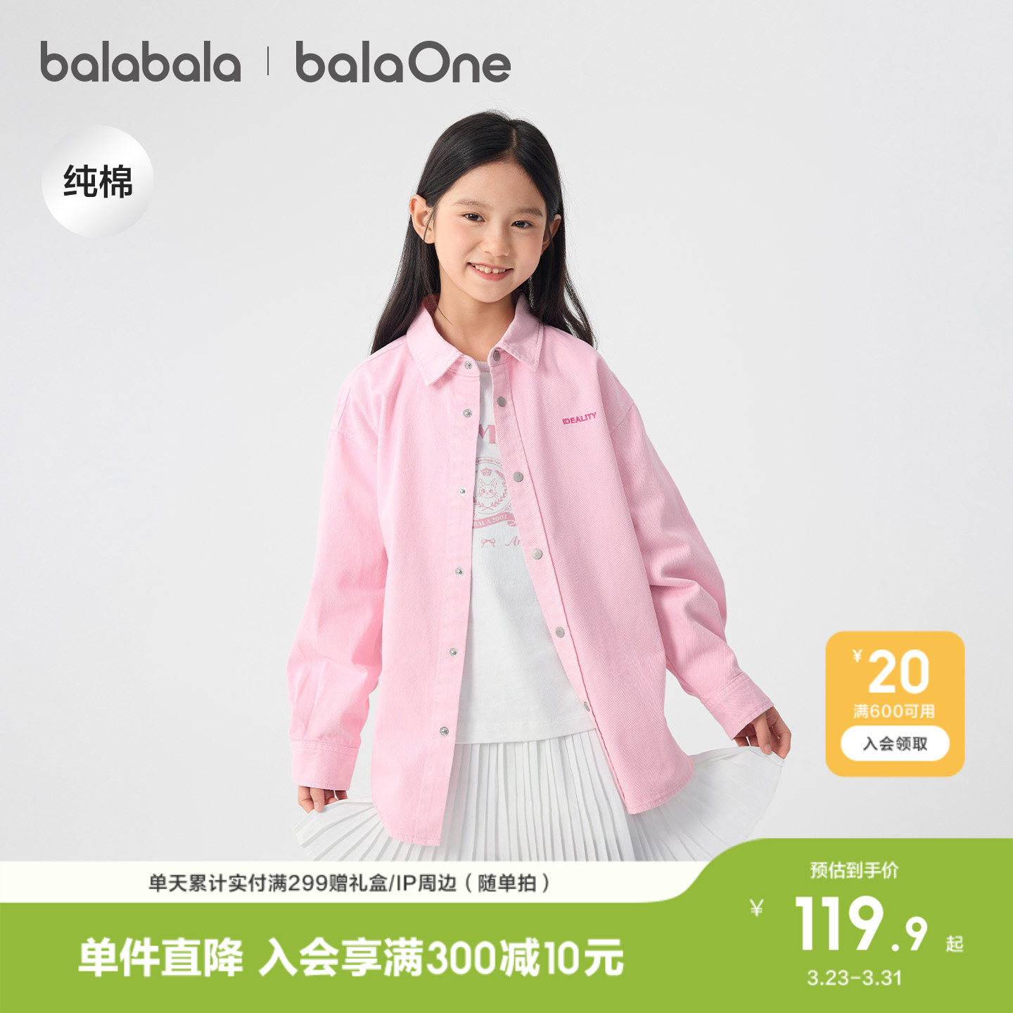 巴拉巴拉童装儿童长袖衬衫女童男童2026新款春装牛仔上衣纯棉舒适