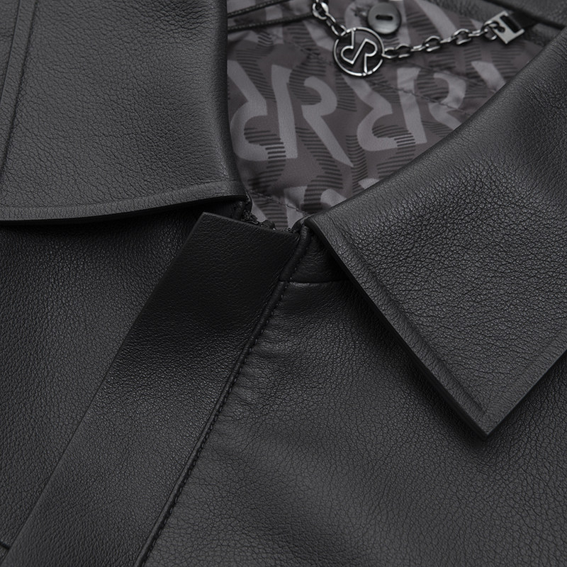 RARE威雅男装 冬季新款男士黑色翻领可脱卸羽绒服内胆皮衣外套