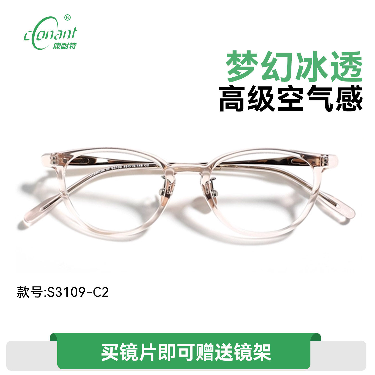 康耐特Conant非球面近视眼镜片配梦幻蓝紫冰透框眼镜136