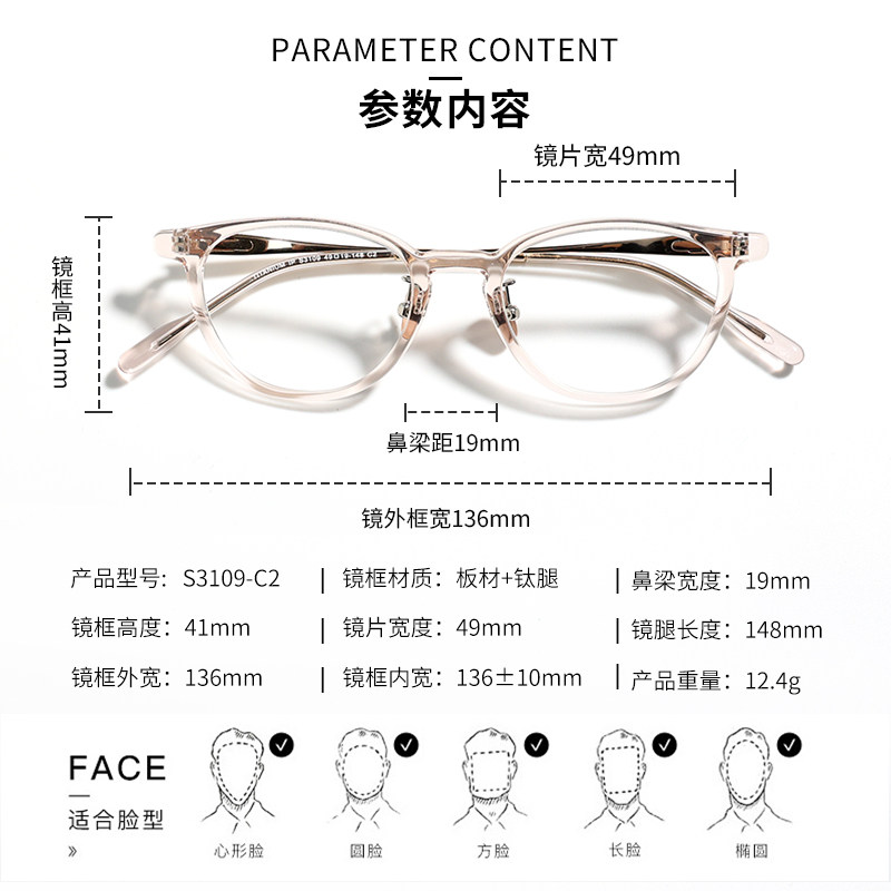 【肖战生日同款】陌森眼镜框书呆子钛架女款近视可配度数镜MA7036
