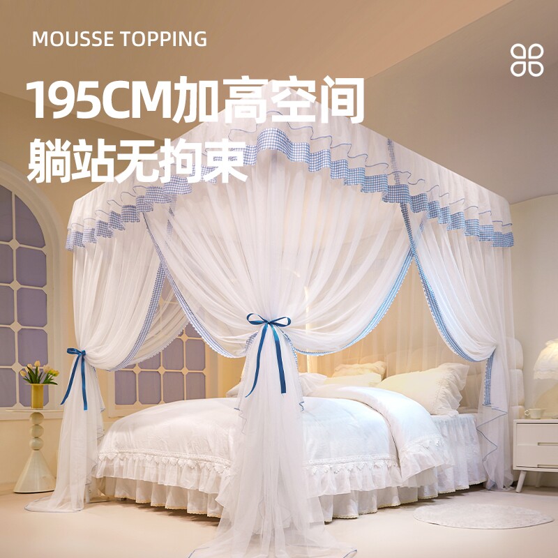 免安装蚊帐家用2026新款卧室三开门落地式高级支架杆加粗加厚法式