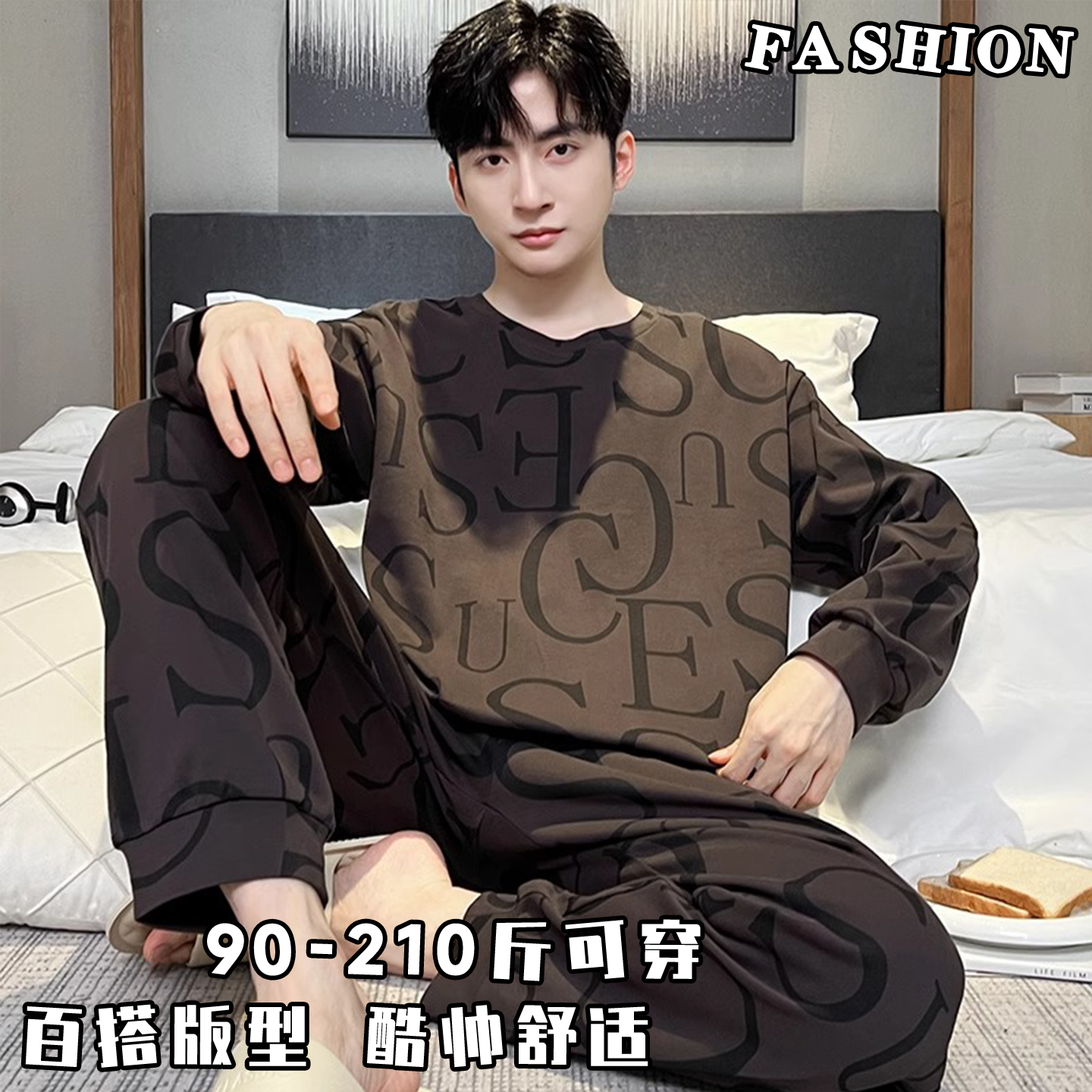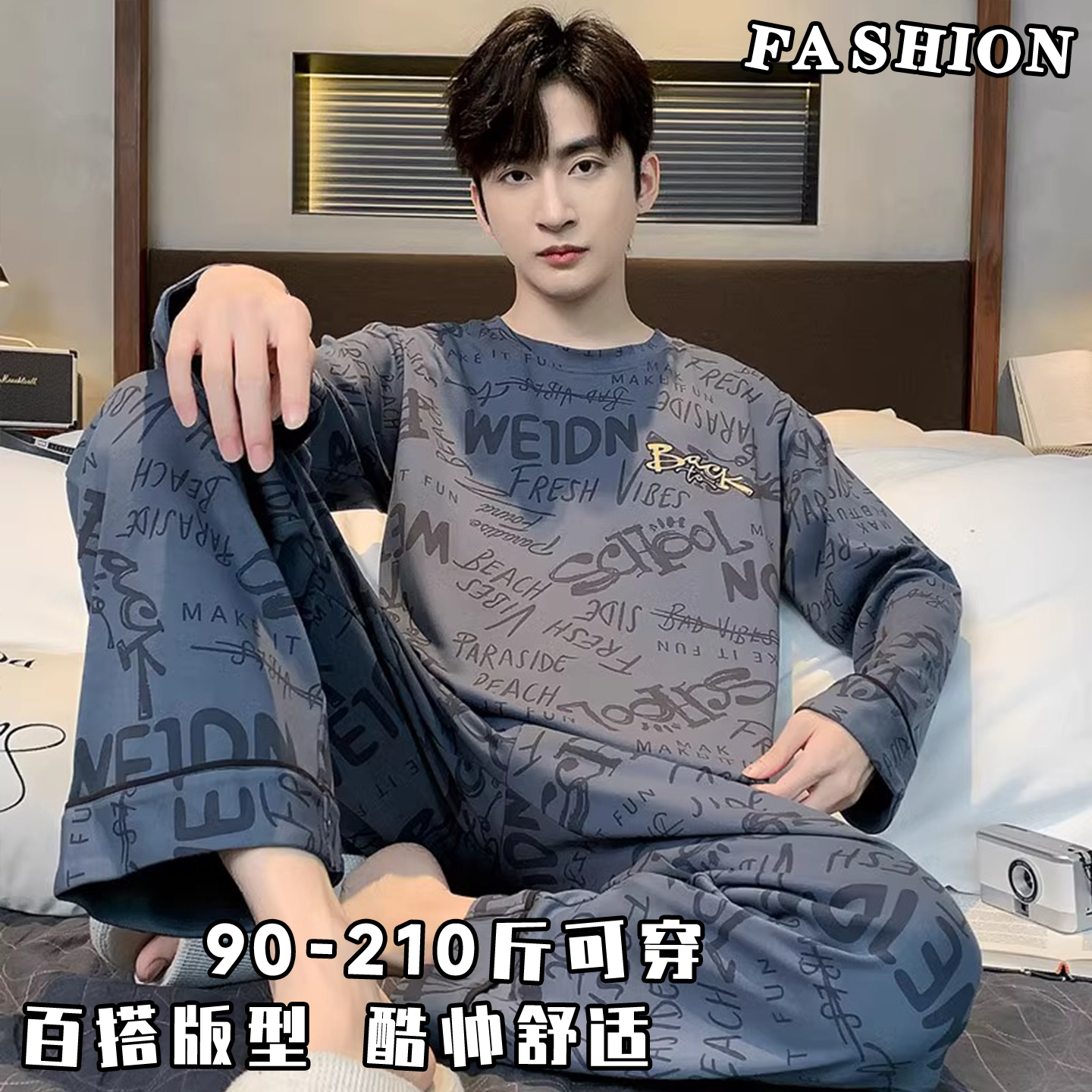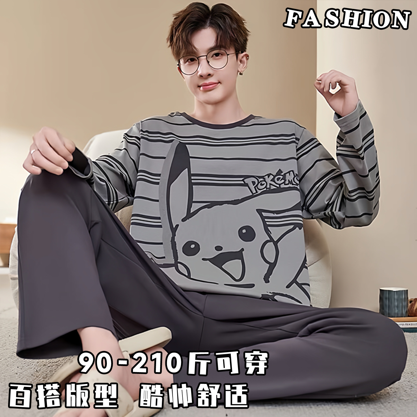 男士春秋季长袖学生圆领潮流卡通长裤套装2025新款睡衣薄款家居服