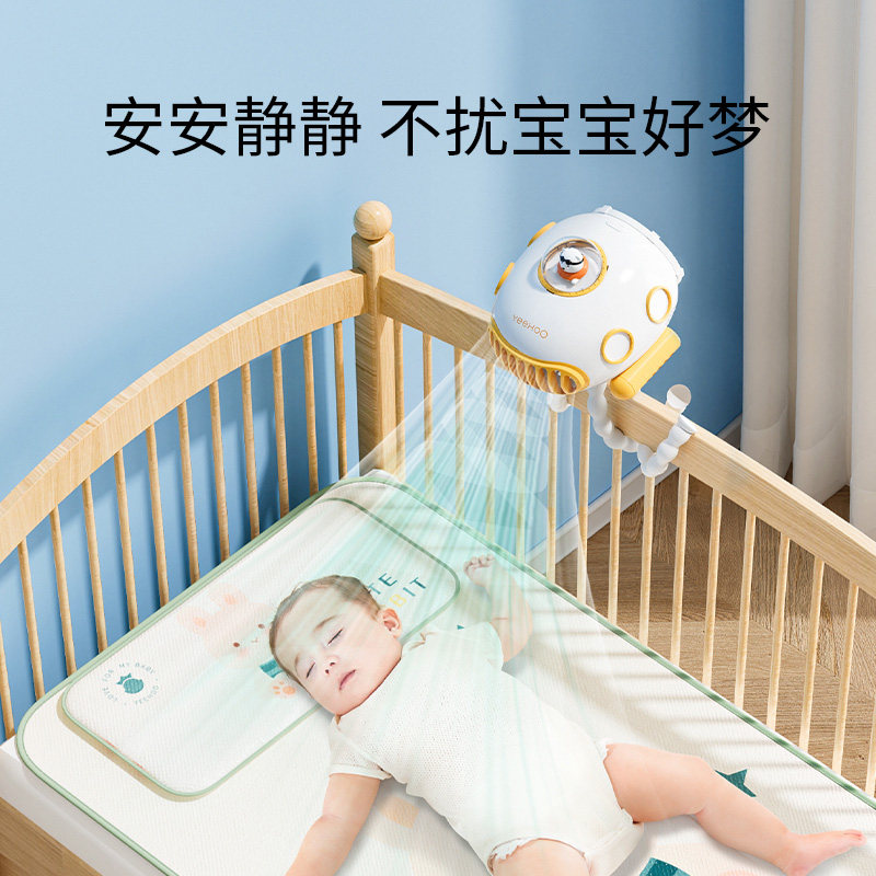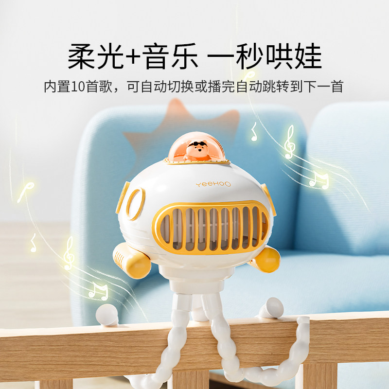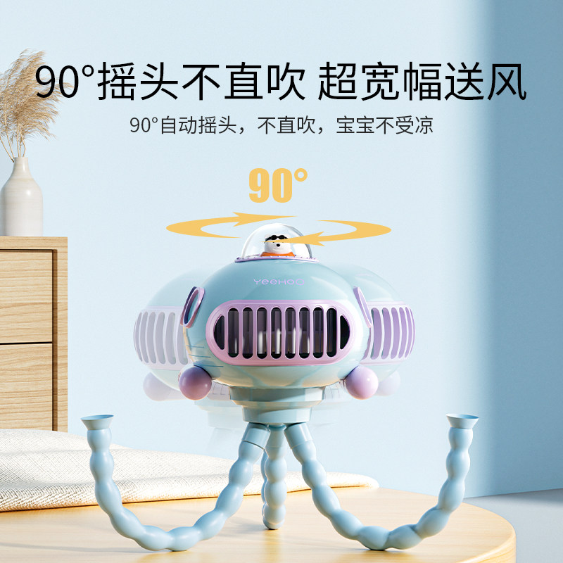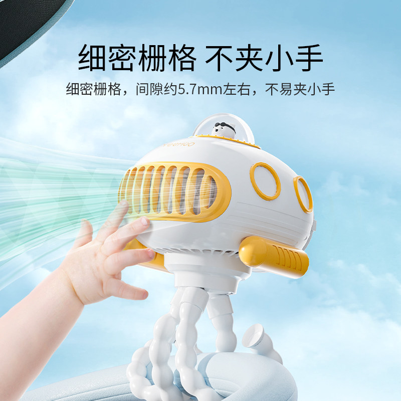 英氏婴儿车小风扇八爪鱼无叶可摇头宝宝bb手推车电扇儿童自行车usb充电放音乐水母儿童随身电风扇溜娃神器