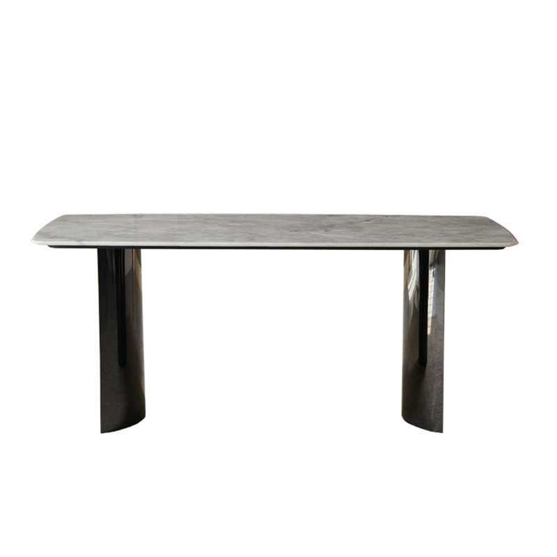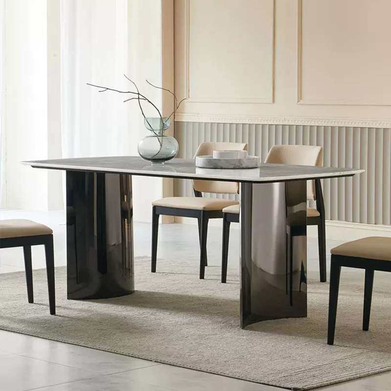 轻奢意式天然微晶石餐桌大理石长方形小户型不锈钢家用饭桌椅组合