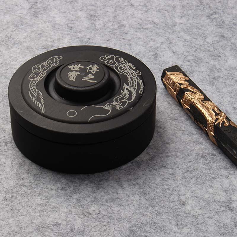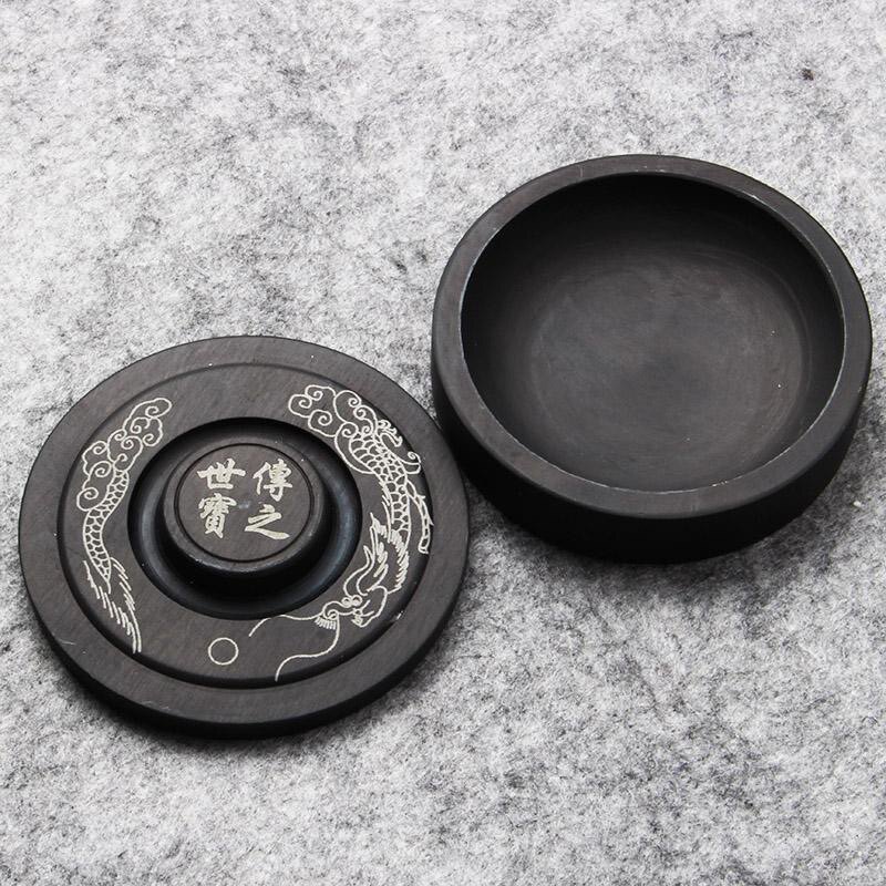 砚台原石天然墨汁砚台书法专用带盖墨盒墨碟文房四宝砚台可磨墨块