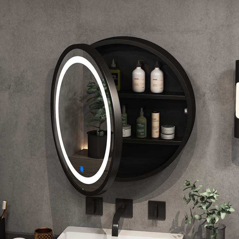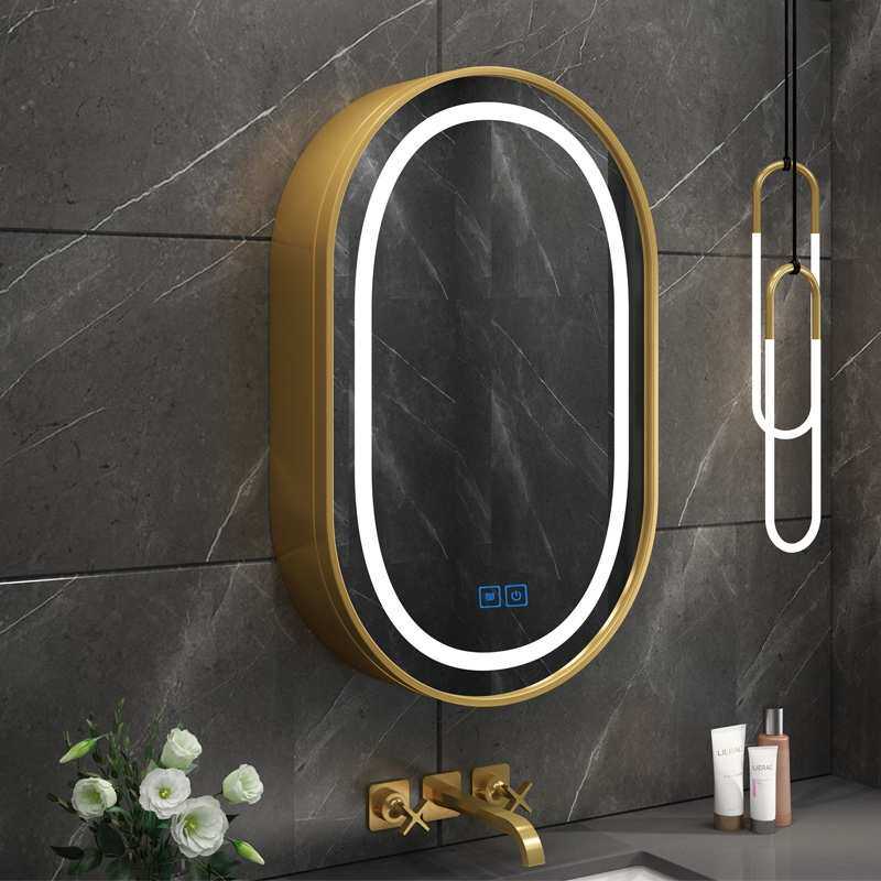 L7LED智能浴室镜柜实木椭圆形卫生间壁挂圆镜子带灯挂墙式梳妆镜