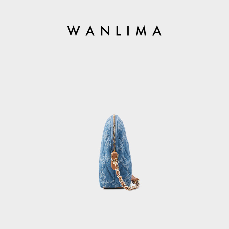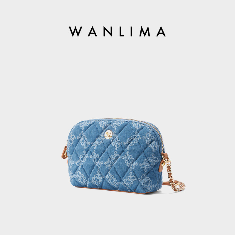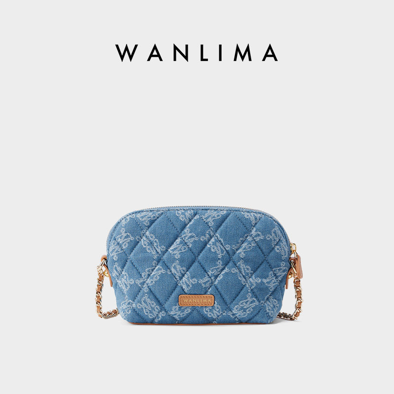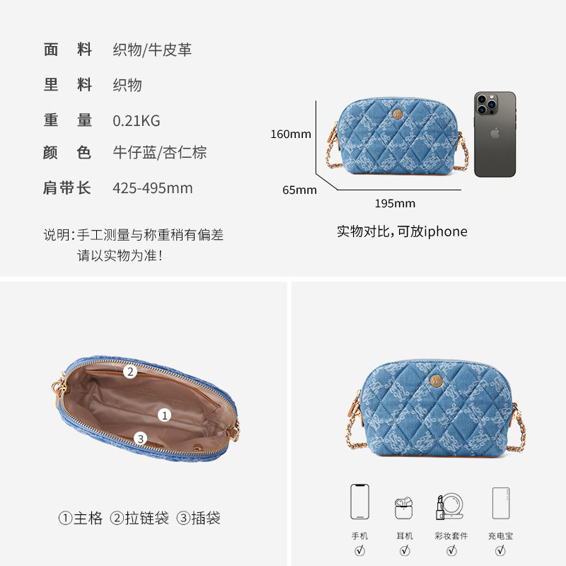 万里马丹宁贝壳包女链条包菱格mini迷你单肩饺子包斜挎手机包