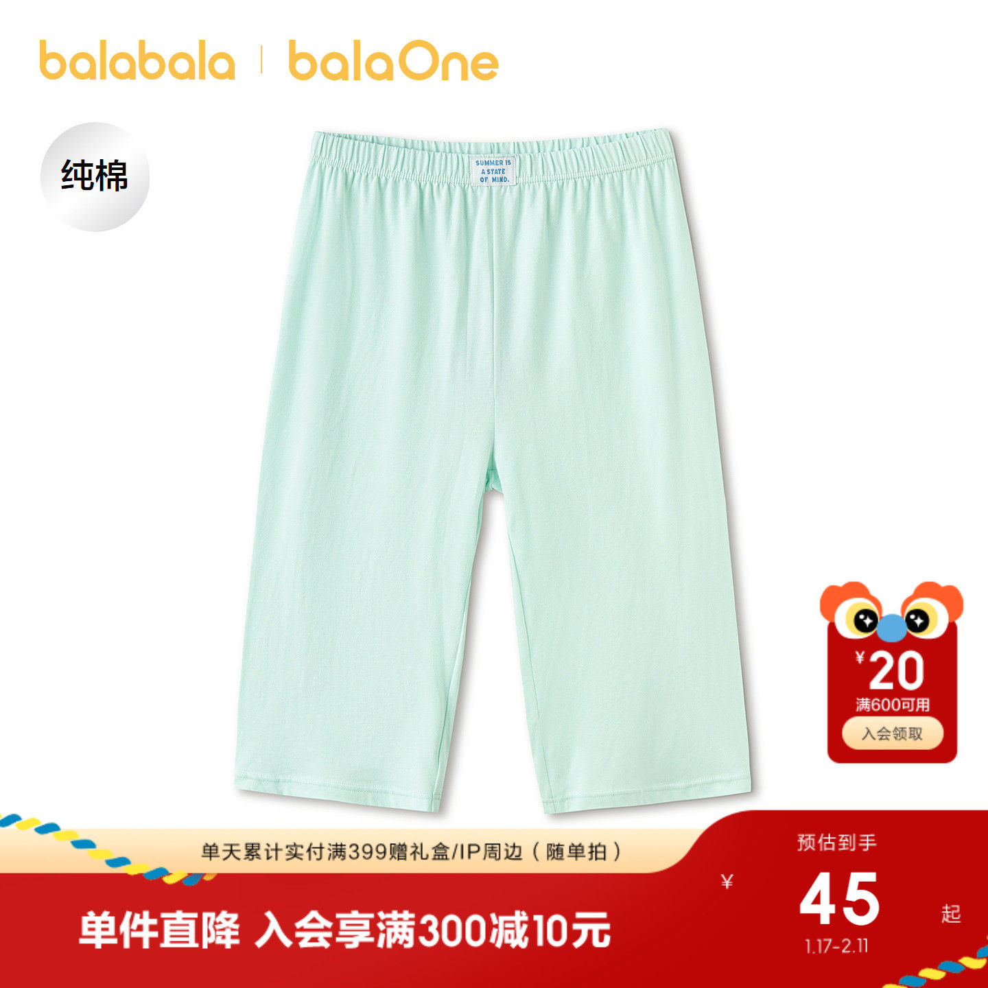 巴拉巴拉童装儿童裤子男女童睡裤夏季新品空调服防着凉宝宝防蚊裤